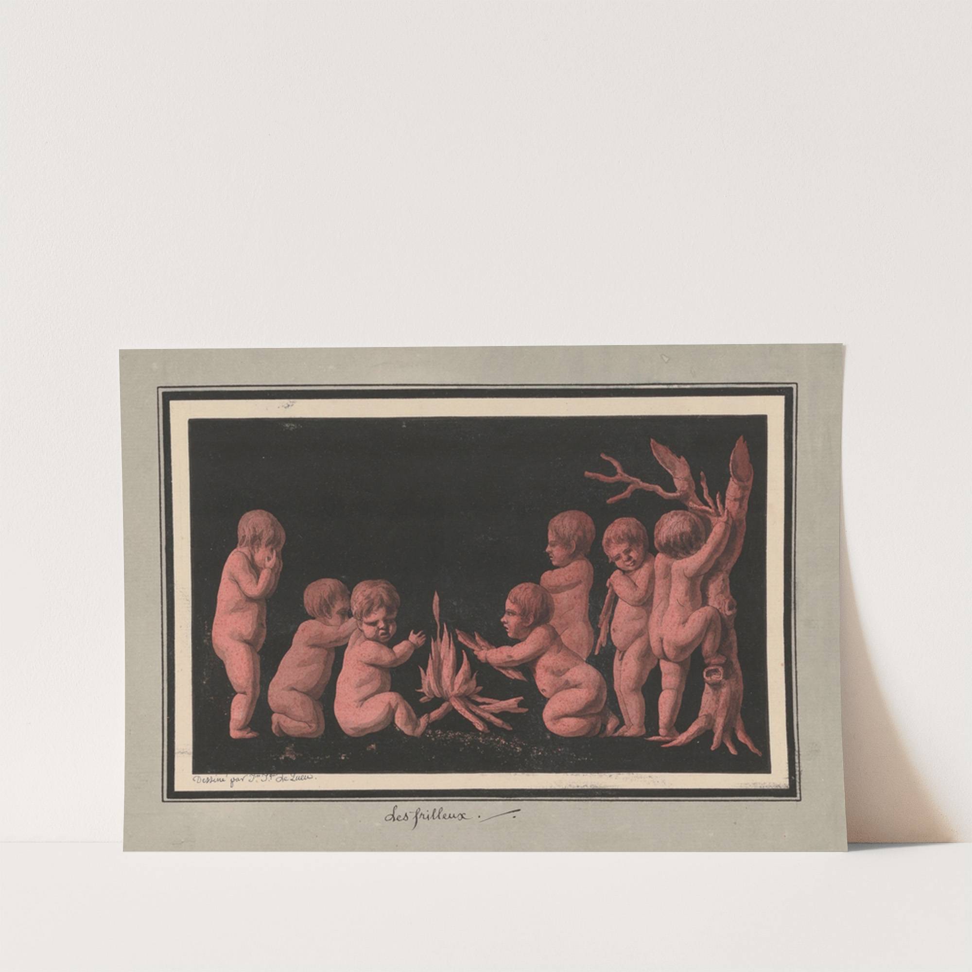 Les frilleux. (Putti se réchauffant devant un feu) (1777-1825) by Jean Jacques Lequeu - Wall Art Print