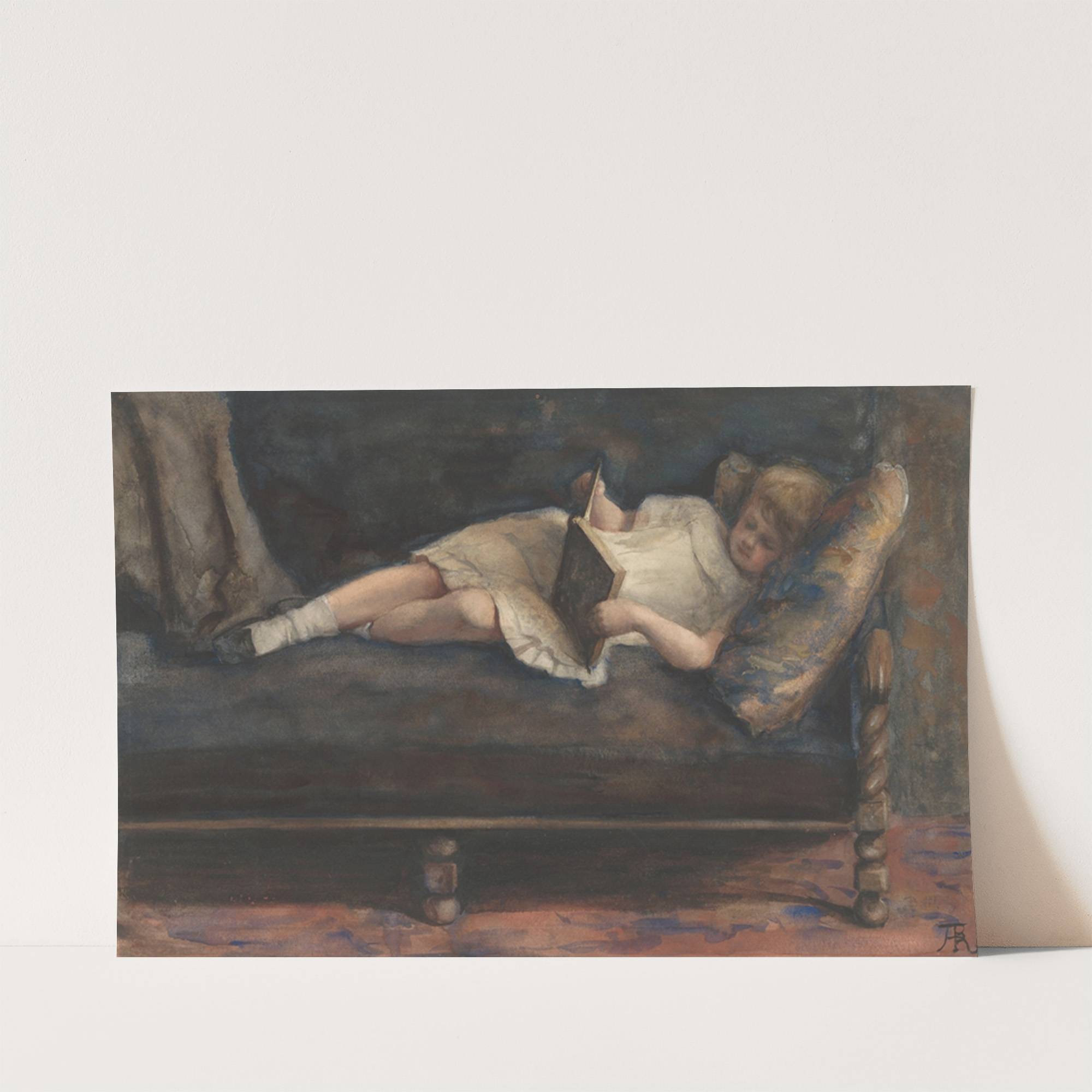 Lezend meisje, liggend op een bank by Bramine Hubrecht - Wall Art Print
