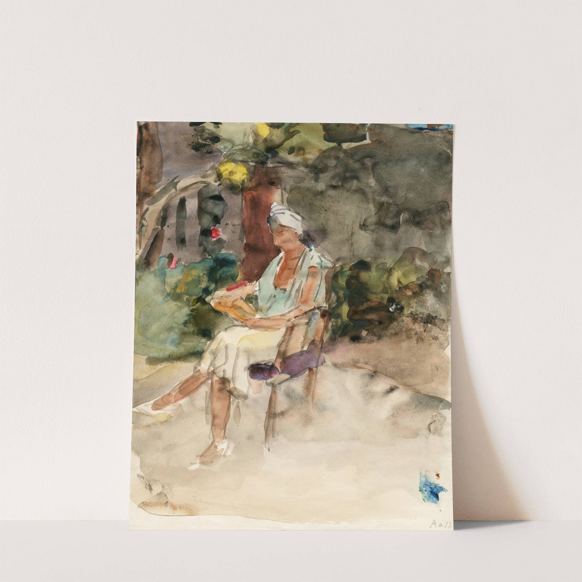 Lezende vrouw op een stoel in een tuin by Isaac Israëls - Wall Art Print