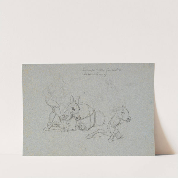Liggende æsel, der piskes og sparkes af en fører Th to studier af et liggende og et stående æsel by Johan Thomas Lundbye - Wall Art Print