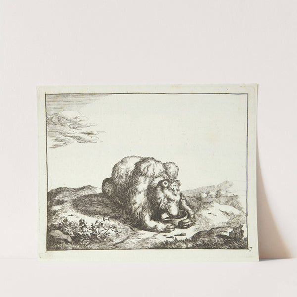Liggende bjørn, set forfra, drikkende af en skål by Marcus de Bye - Wall Art Print