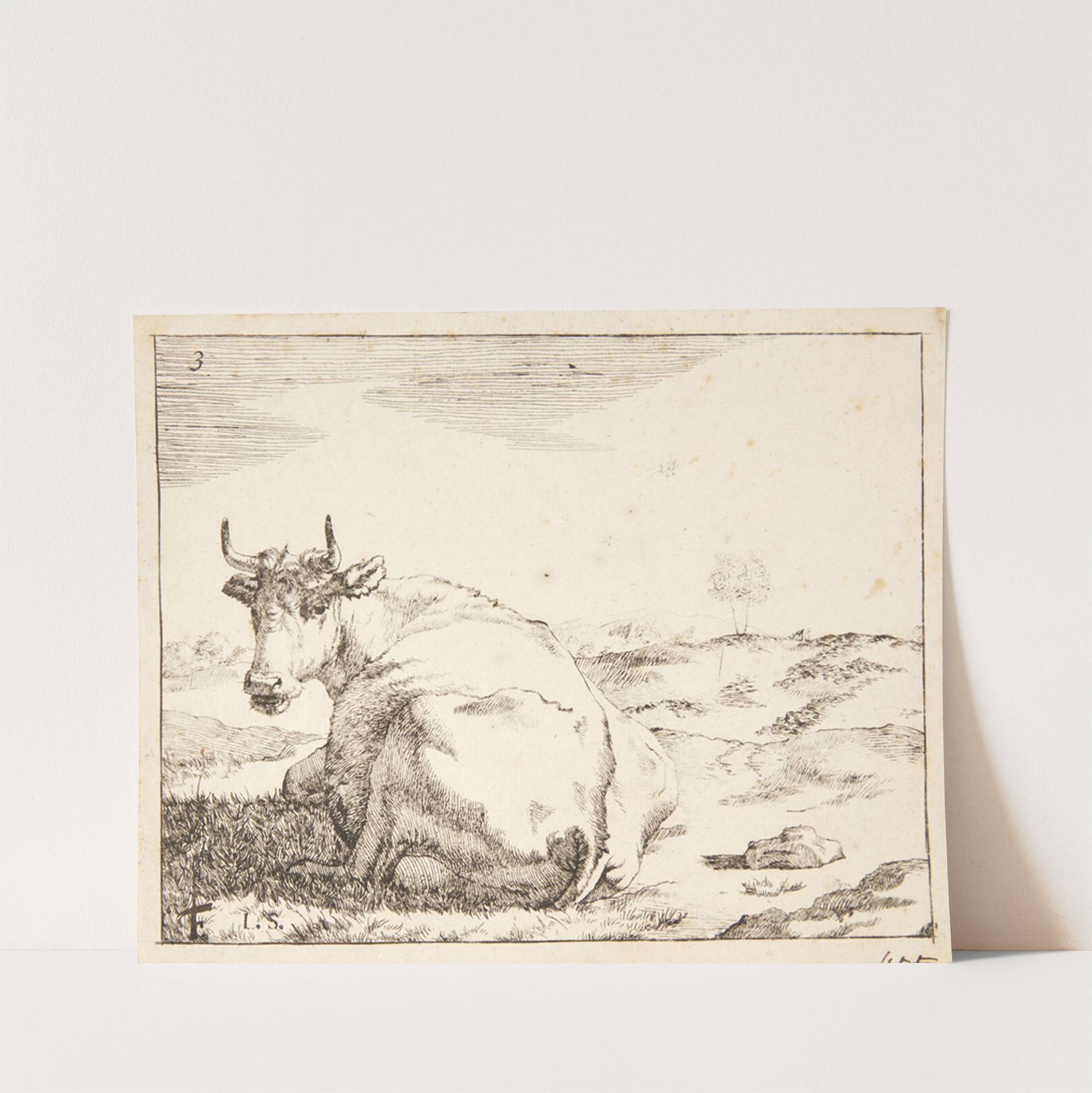 Liggende ko, set bagfra by Marcus de Bye - Wall Art Print