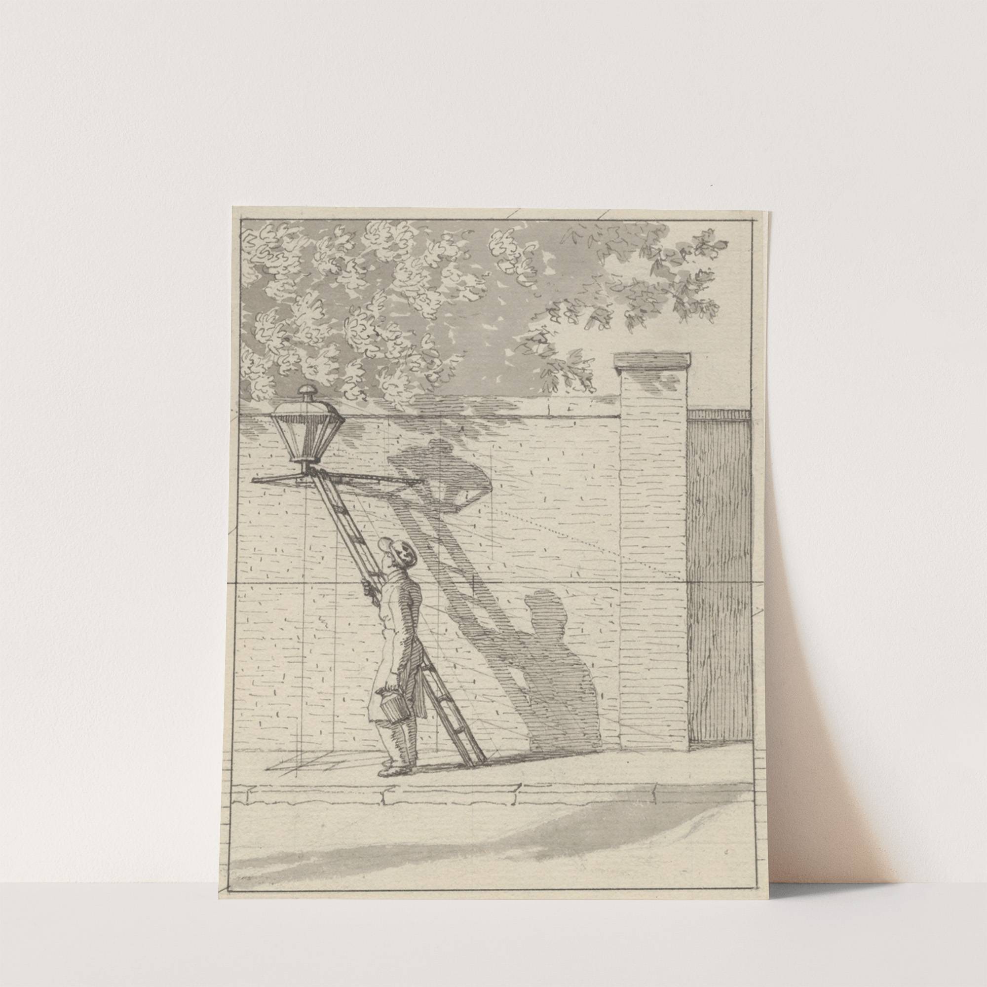 Linearperspektiven anvendt paa Malerkunsten – Tavle VI Gadelygten pÃ¥ parkens mur, Dagslys by Christoffer Wilhelm Eckersberg - Wall Art Print