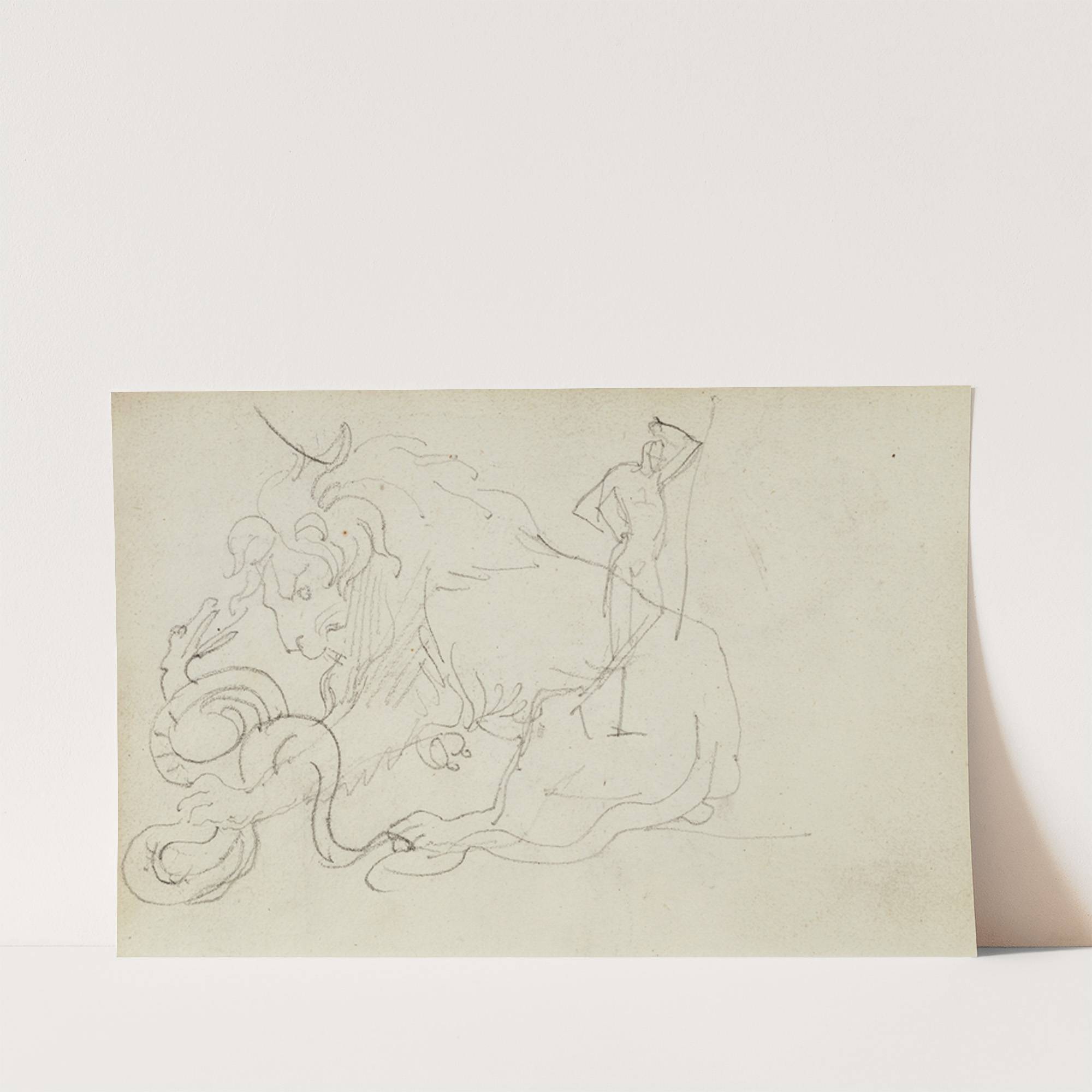 Lion attacking a snake over nude figure study by Théodore Géricault - Wall Art Print