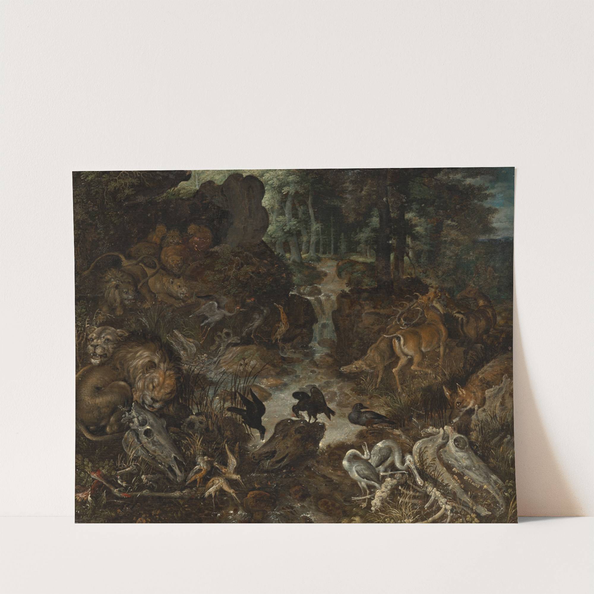 Lions and Fox in a Rugged Landscape (1576–1637) by Roelant Savery - Wall Art Print