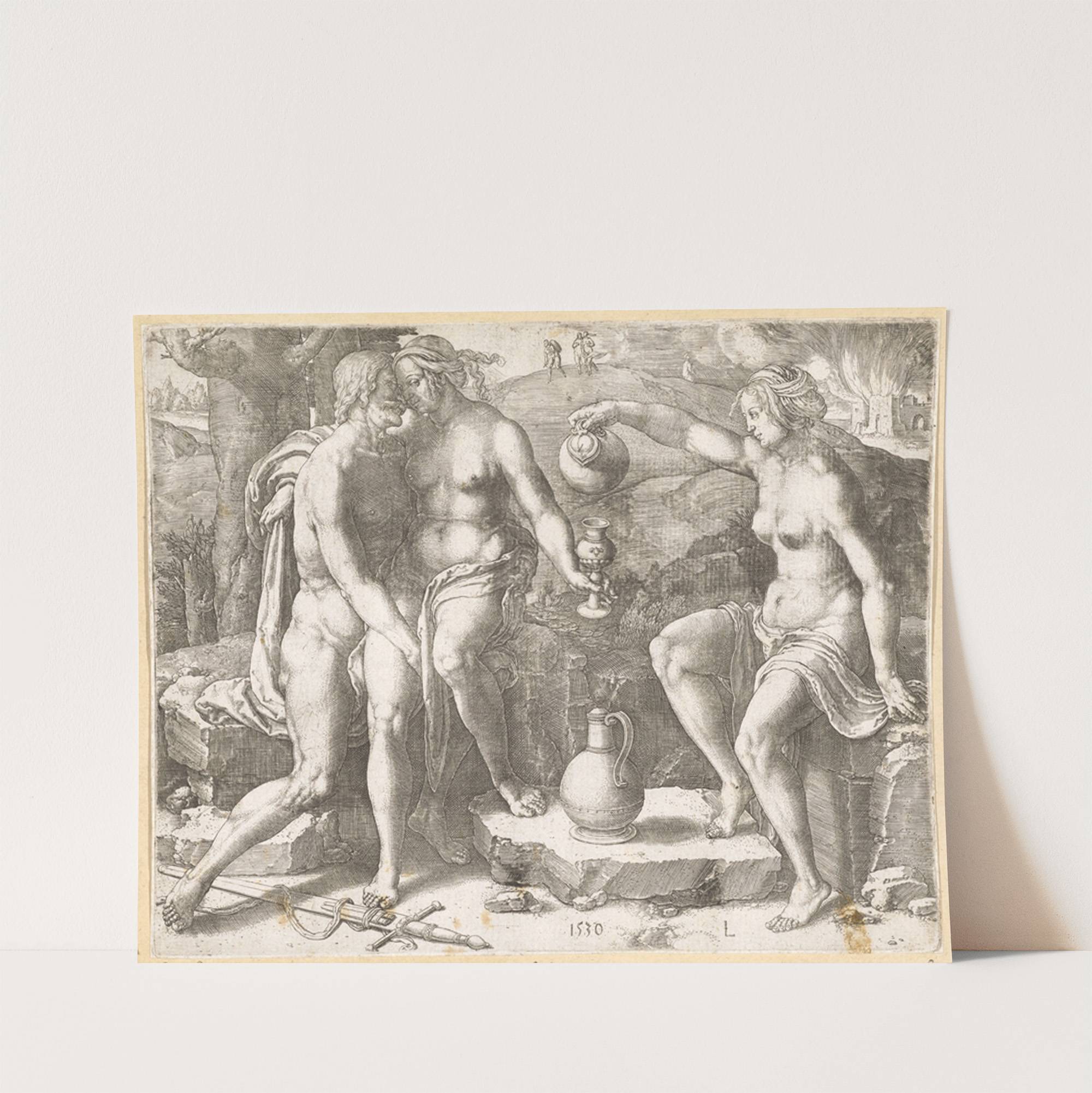 Lot and his daughters (1530) by Lucas Van Leyden - Wall Art Print