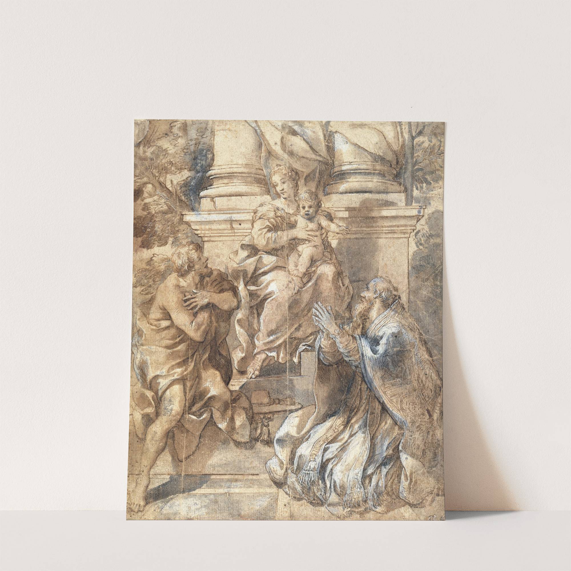 Madonna and Child, Saint John the Baptist and Pope Stephen by Pietro da Cortona - Wall Art Print