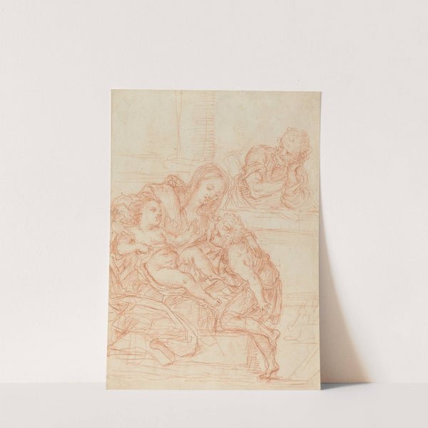 Madonna and Child with Saints John and Joseph (recto) (17th century) by Italian School - Wall Art Print