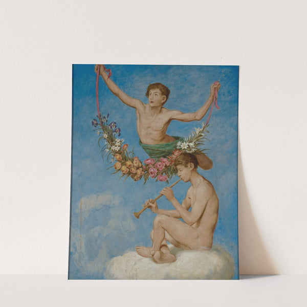 Mai (zwei Jugendliche Genien mit Blumen) by Hans Thoma - Wall Art Print