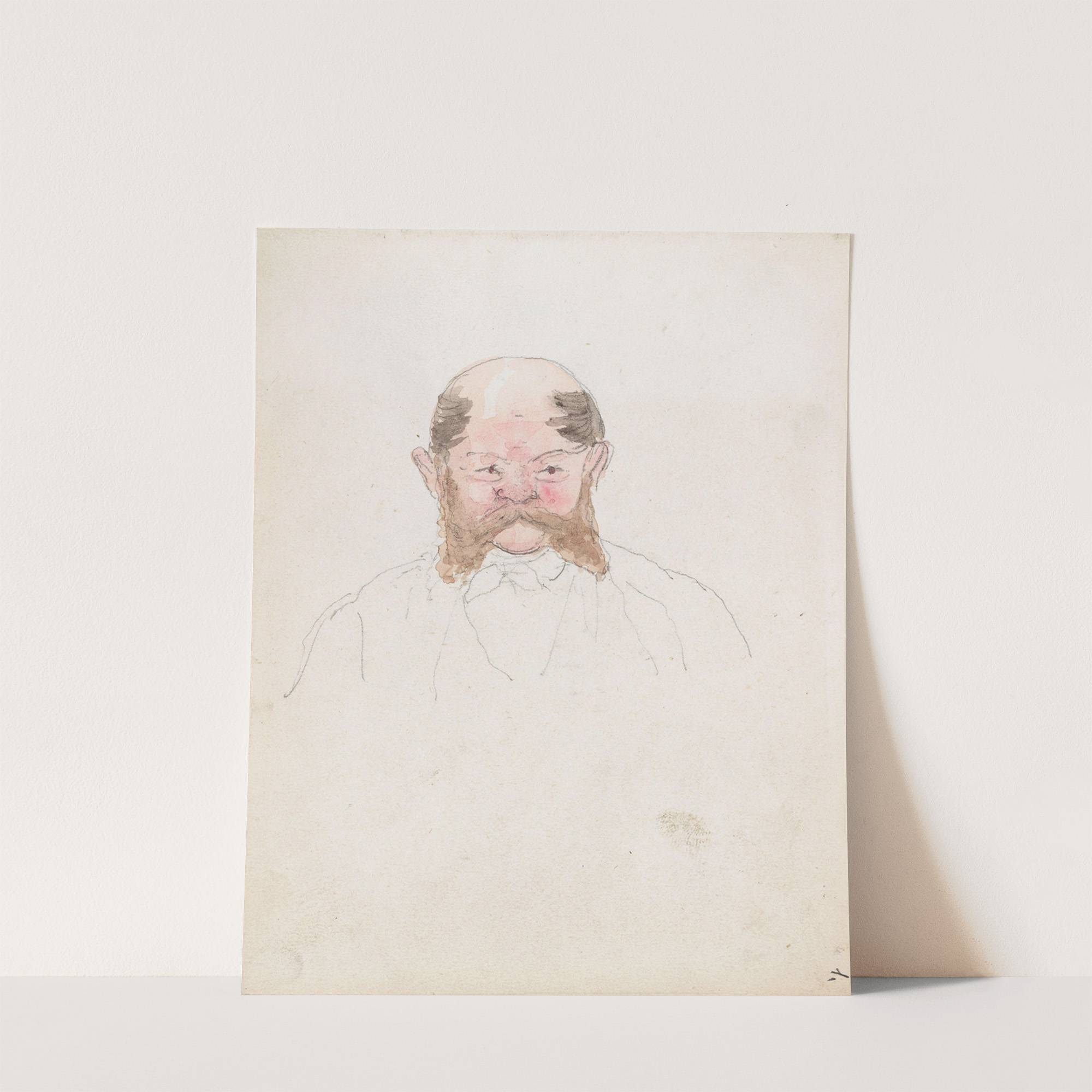 This artwork is a delicate watercolor portrait of a distinguished man created by the renowned artist Adolph Tidemand between 1865 and 1872. The subject has a receding hairline with short, dark brown hair and a prominent reddish-brown beard that extends...