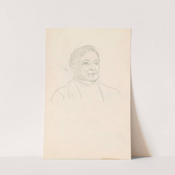 This is a monochromatic line drawing of a male portrait by Adolph Tidemand, likely created in the late 19th century. The artist's skillful use of fine lines and subtle shading brings a sense of depth and realism to the image....
