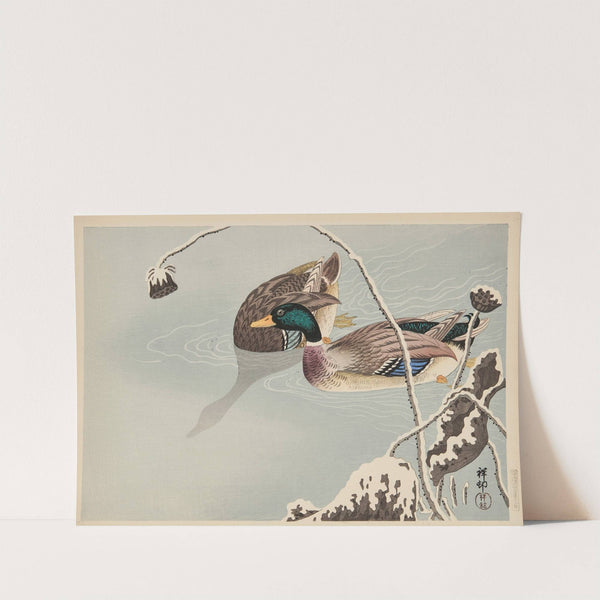Mallards and lotus under snow (circa 1936) by Ohara Koson - Wall Art Print