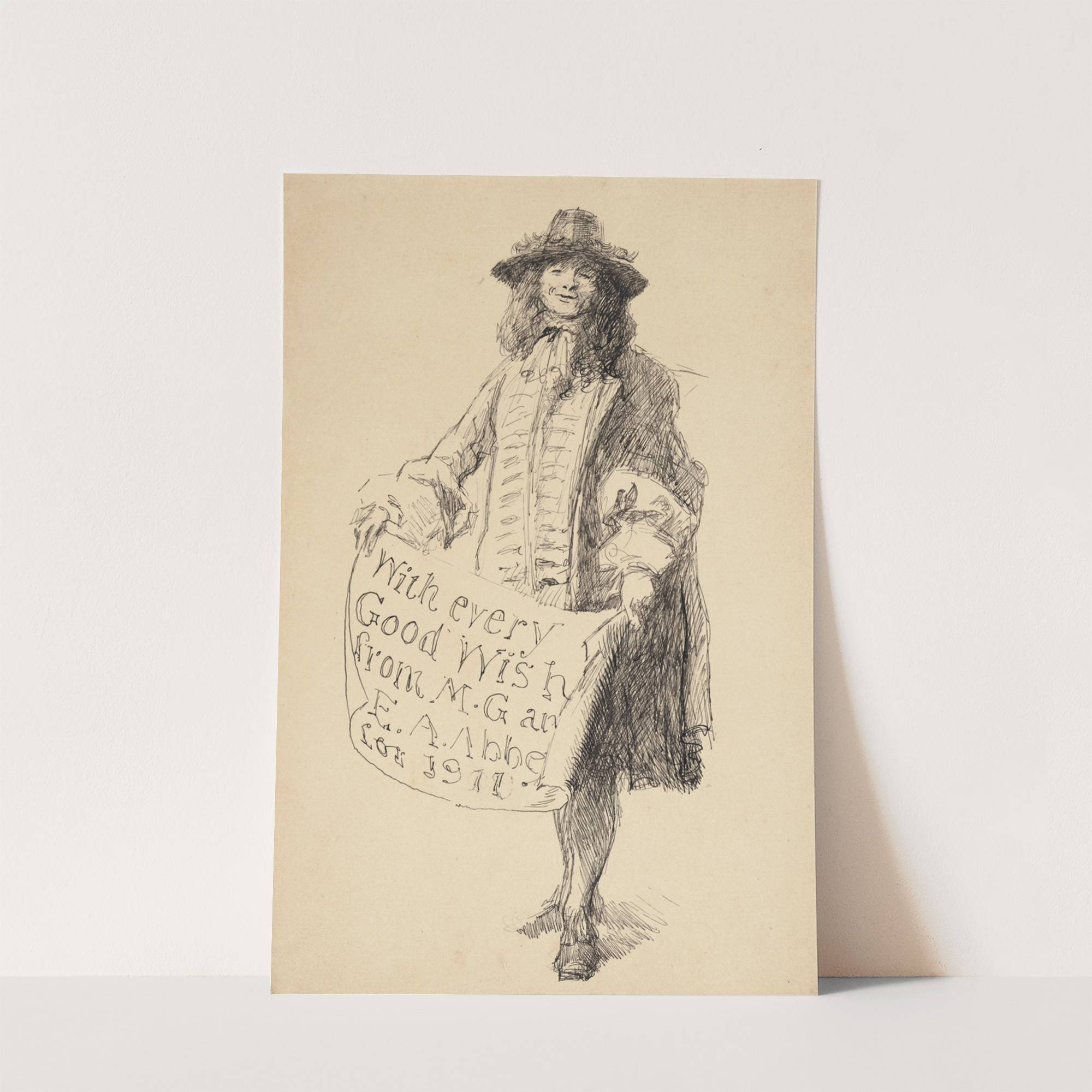 Man in seventeenth-century dress holding a scroll; With every Good Wish from M. G. and E. A. Abbey for 1911 (1911) by Edwin Austin Abbey - Wall Art Print
