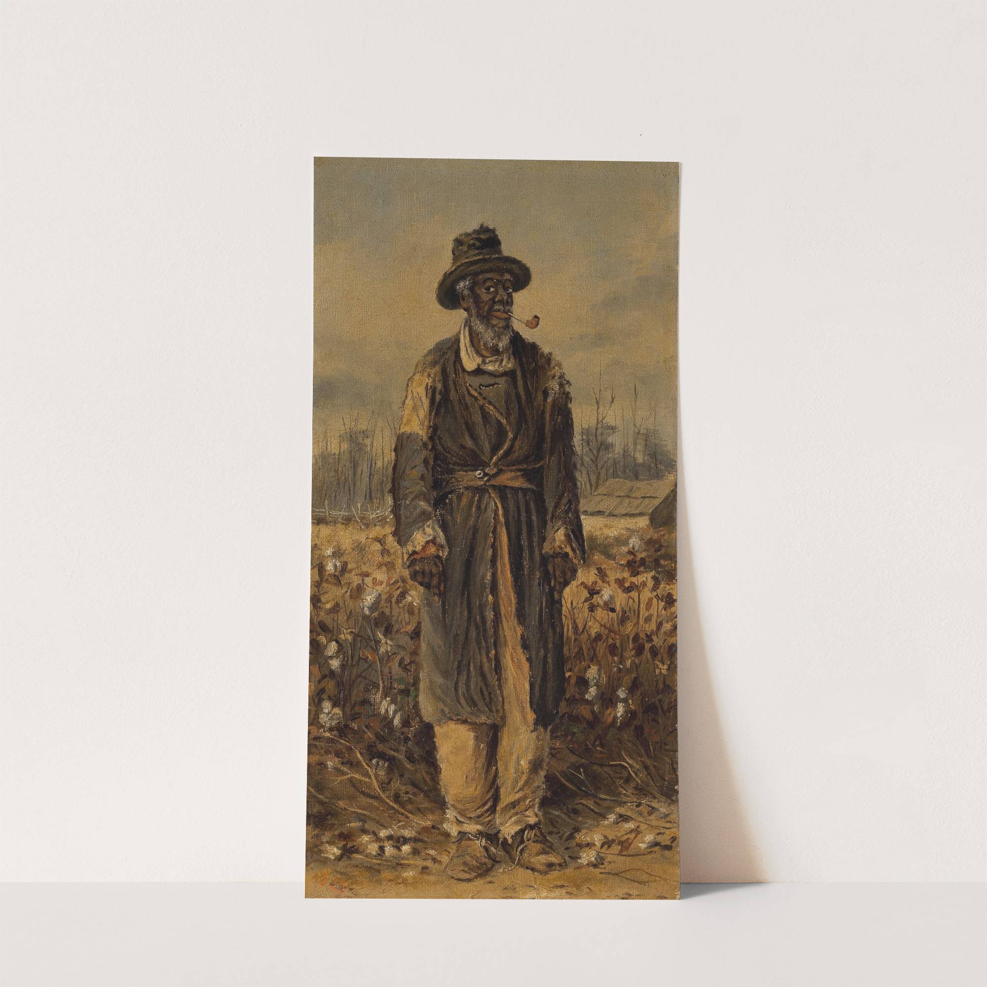 Man Smoking Pipe in Cotton Field by William Aiken Walker - Wall Art Print