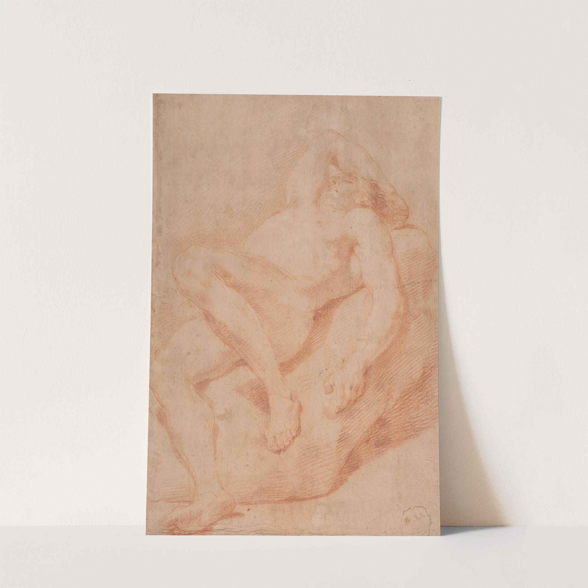 Mandlig modelstudie, halvtliggende by Hendrik Krock - Wall Art Print
