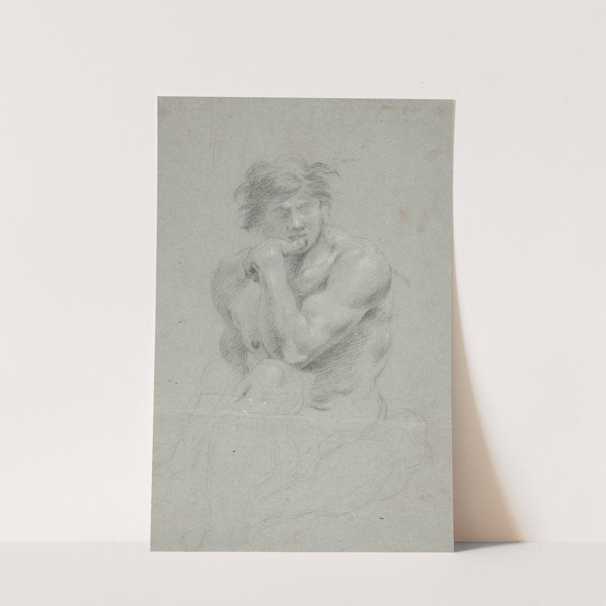 Mandlig modelstudie, overkroppen og underkroppen skitseret by Hendrik Krock - Wall Art Print