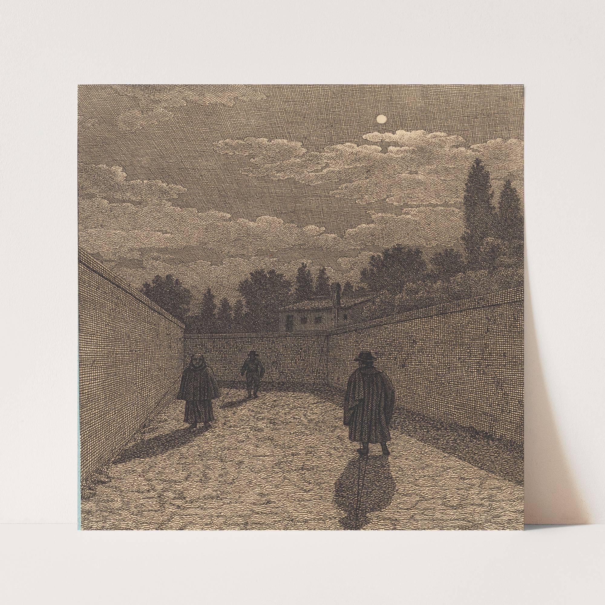 Måneskin over en vej med tre figurer Illustration til Linearperspectiven , Tavle IV by Christoffer Wilhelm Eckersberg - Wall Art Print