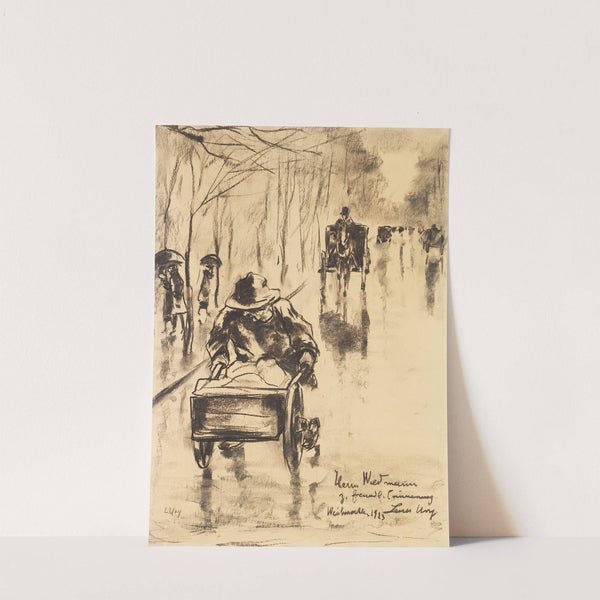 Mann mit Handkarren (Tiergartenstraße im Regen) (1923) by Lesser Ury - Wall Art Print