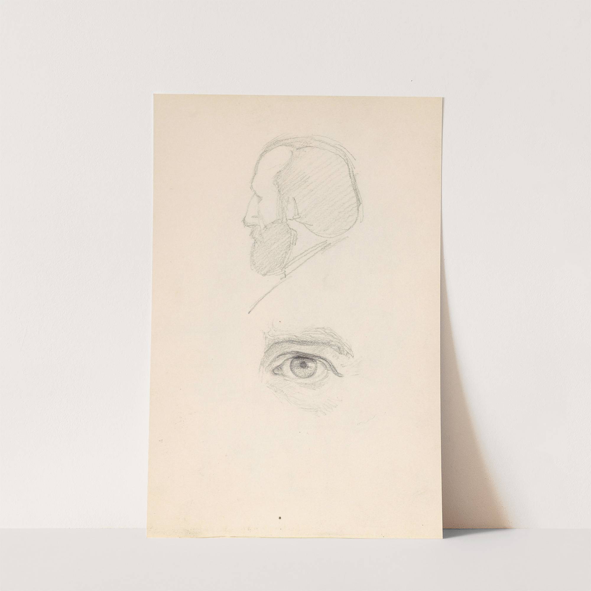 This striking art print by Mannshode features a minimalistic yet evocative composition, blending elements of portraiture with abstract expressionism. The top portion showcases a delicate pencil sketch of a male figure’s head in profile, with subtle details suggesting a beard...