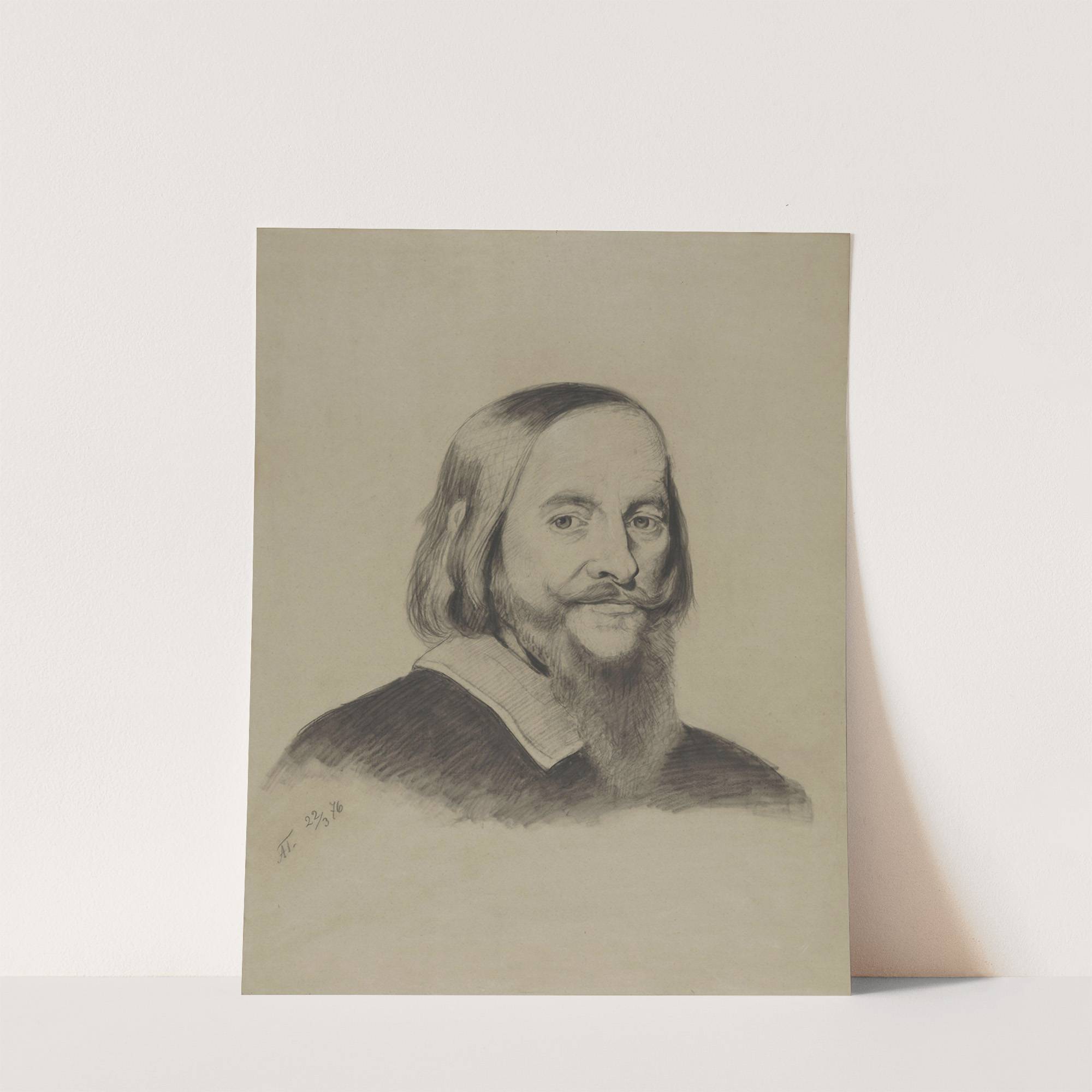This art print features "Mannsporträt" (Man Portrait), an exquisite pencil drawing by Adolph Tidemand from 1876. The portrait showcases a distinguished older man with long, straight hair that reaches his shoulders and a full beard. His calm, composed expression is...