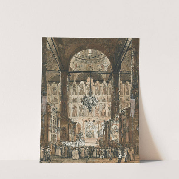 Mass At The Uspensky Cathedral by Russian School - Wall Art Print