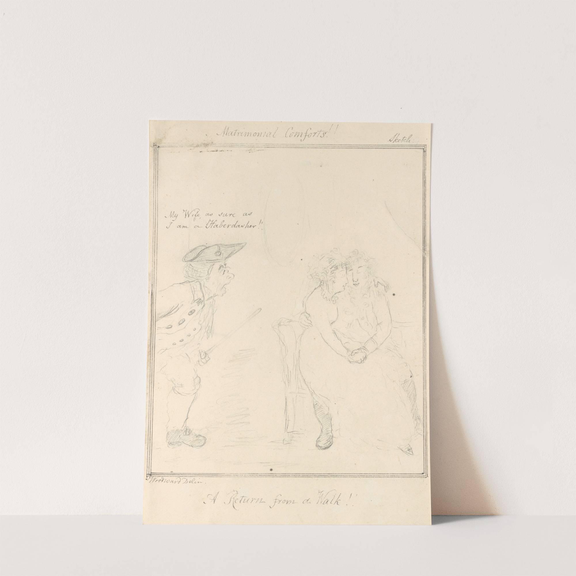 Matrimonial Comforts!!; A Return from a Walk!! by George Moutard Woodward - Wall Art Print