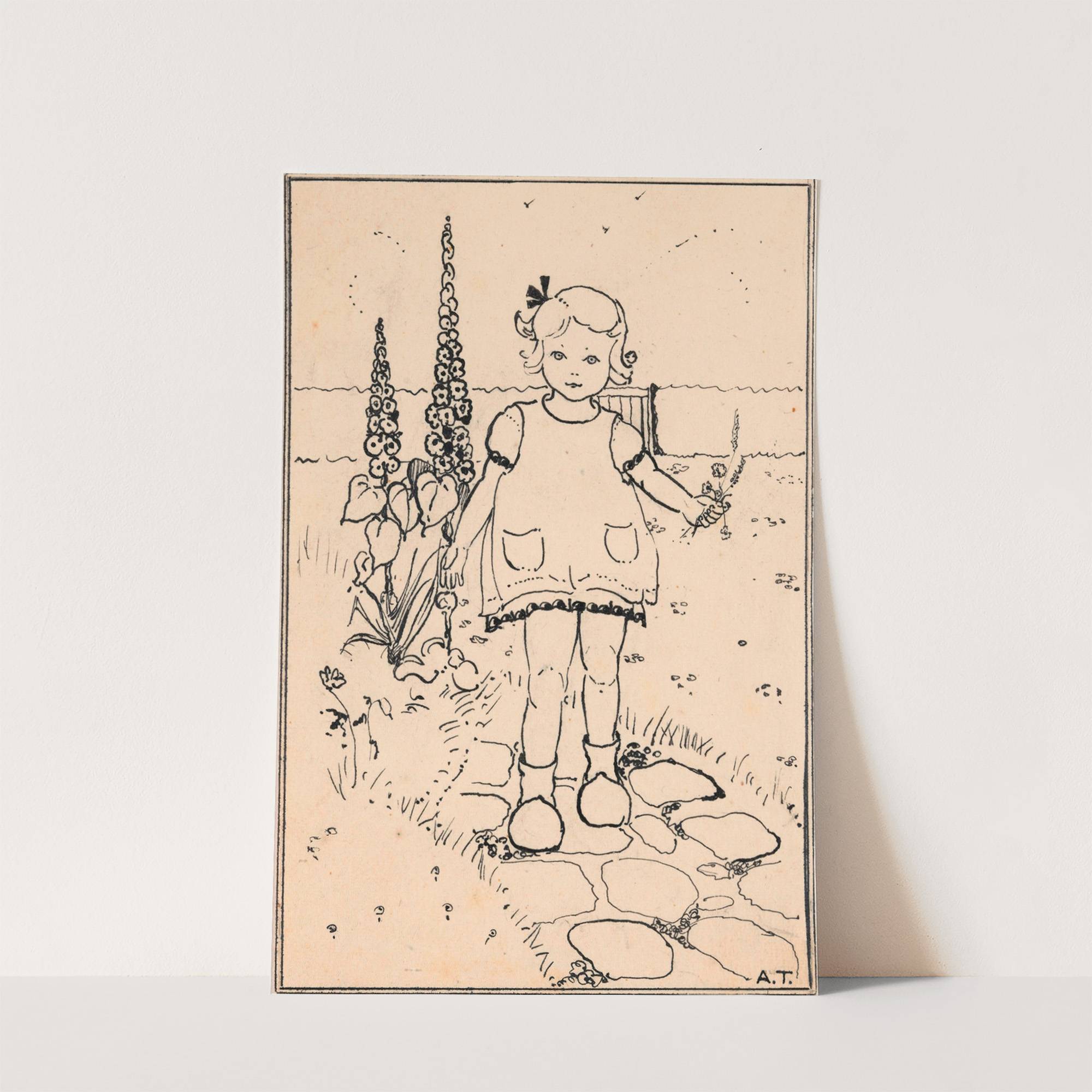 Meisje wil baby uit wieg tillen by A. Tinbergen - Wall Art Print