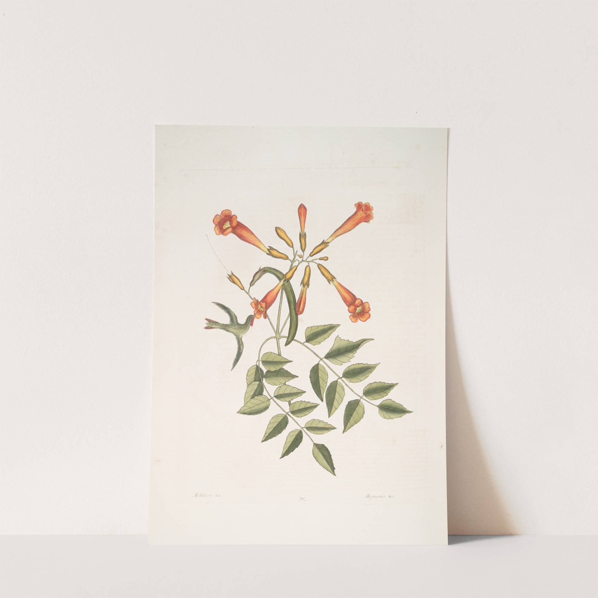 Mellivora &c. , The Humming-bird; Bignonia &c., The Trumpet-Flower. by Mark Catesby - Wall Art Print