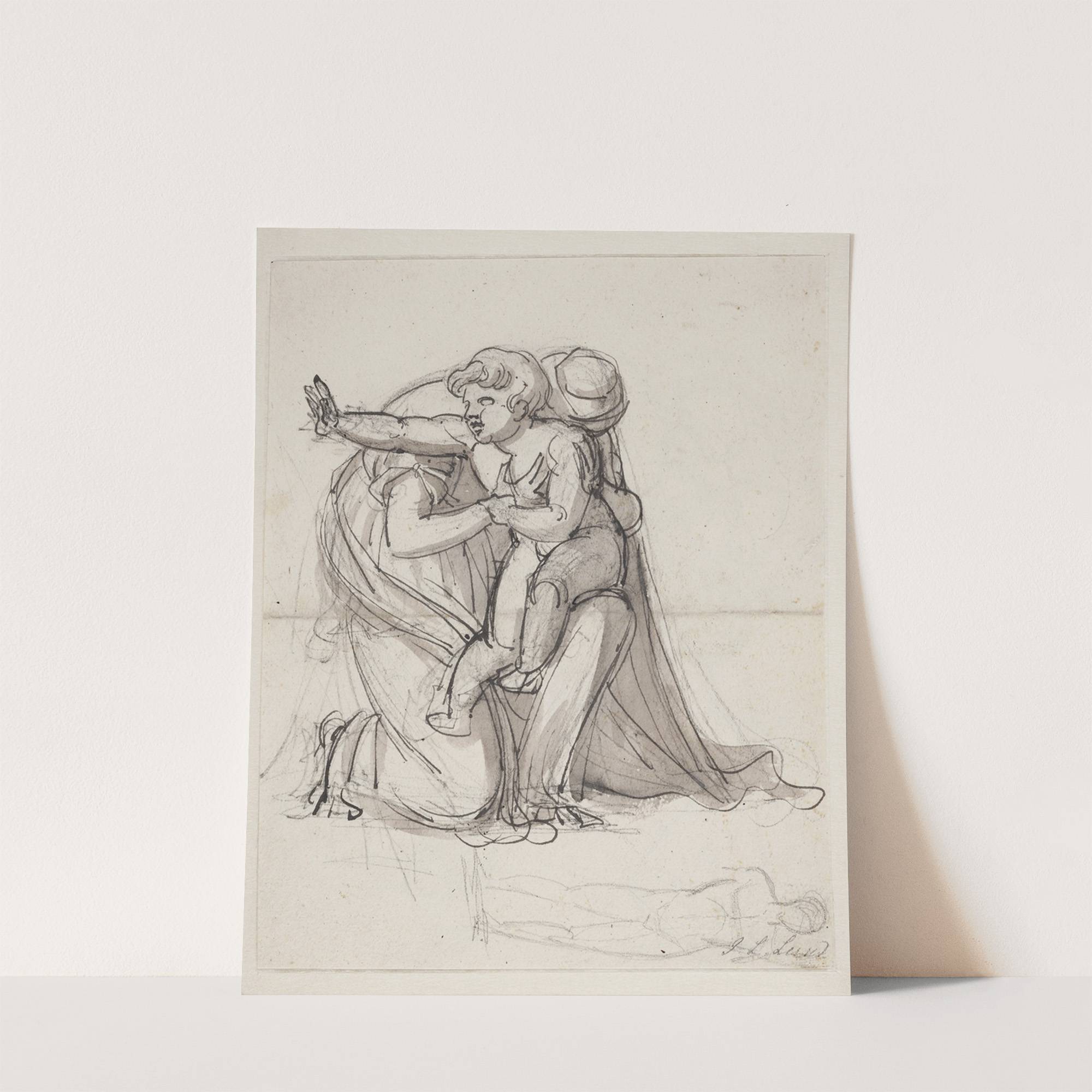 Moder og barn Studie til Andromache begrædende Hektors død by Johan Ludvig Lund  - Wall Art Print