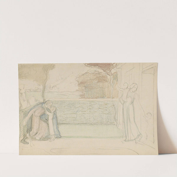 Moeder en kinderen die een bezoeker verwelkomen in een voortuin by Antoon Derkinderen - Wall Art Print