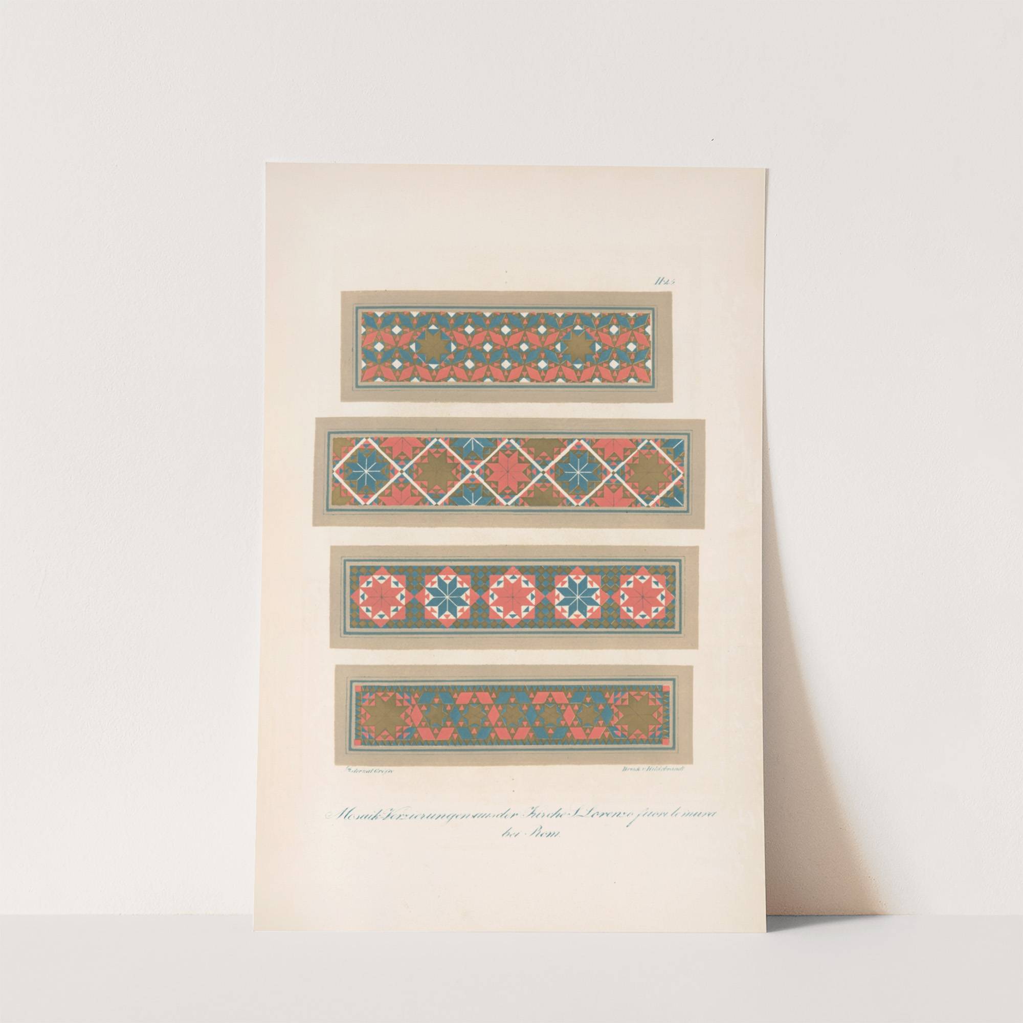 Mosaik-Verzierungen aus der Kirche S. Lorenzo fuori le mura bei Rom by Friedrich Maximilian Hessemer - Wall Art Print