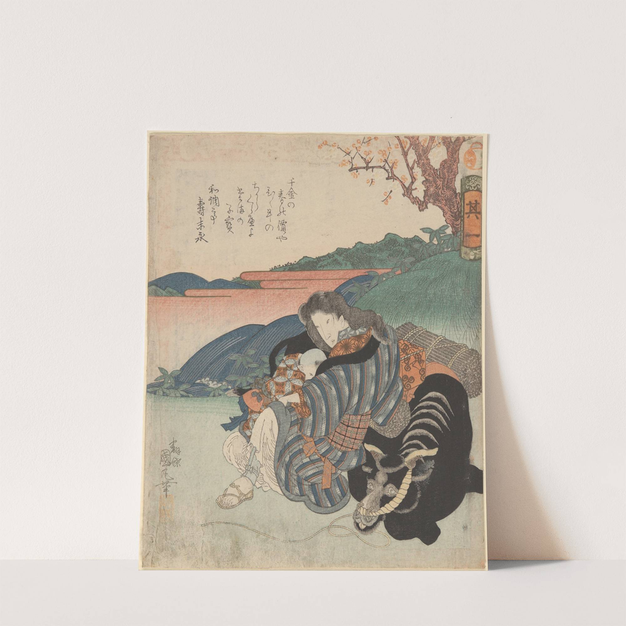 Mother Nursing Child, Leaning on a Bull by Utagawa Kunimaru - Wall Art Print