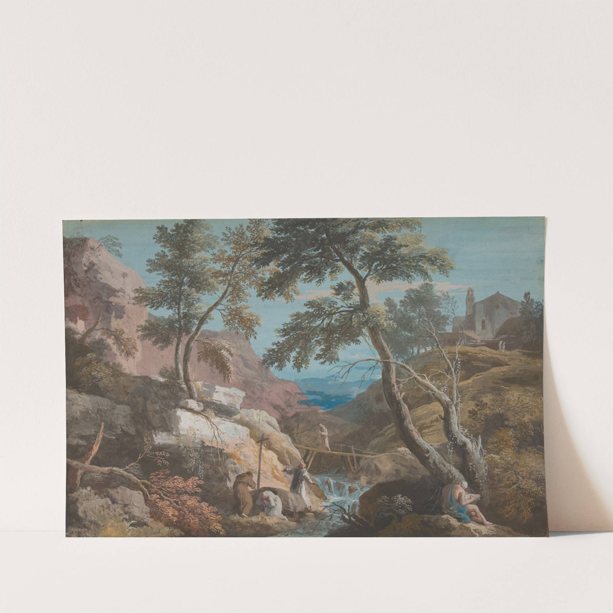 Mountainous Landscape with Hermits by Marco Ricci - Wall Art Print