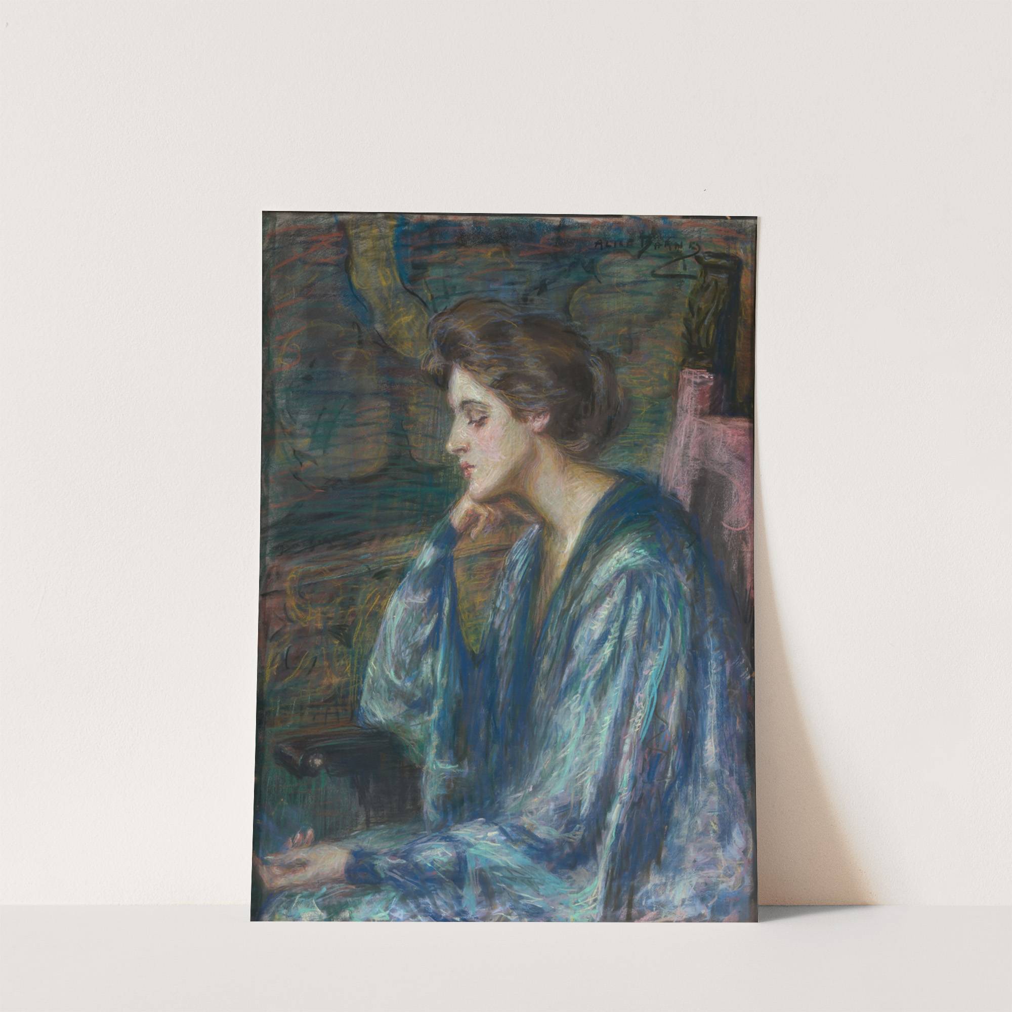 This captivating art print features "Mrs. Roosevelt Scovel" by the talented artist Alice Pike Barney. The piece showcases a beautifully rendered portrait of a woman with delicate features and a contemplative expression. Her soft brown hair is styled in an...