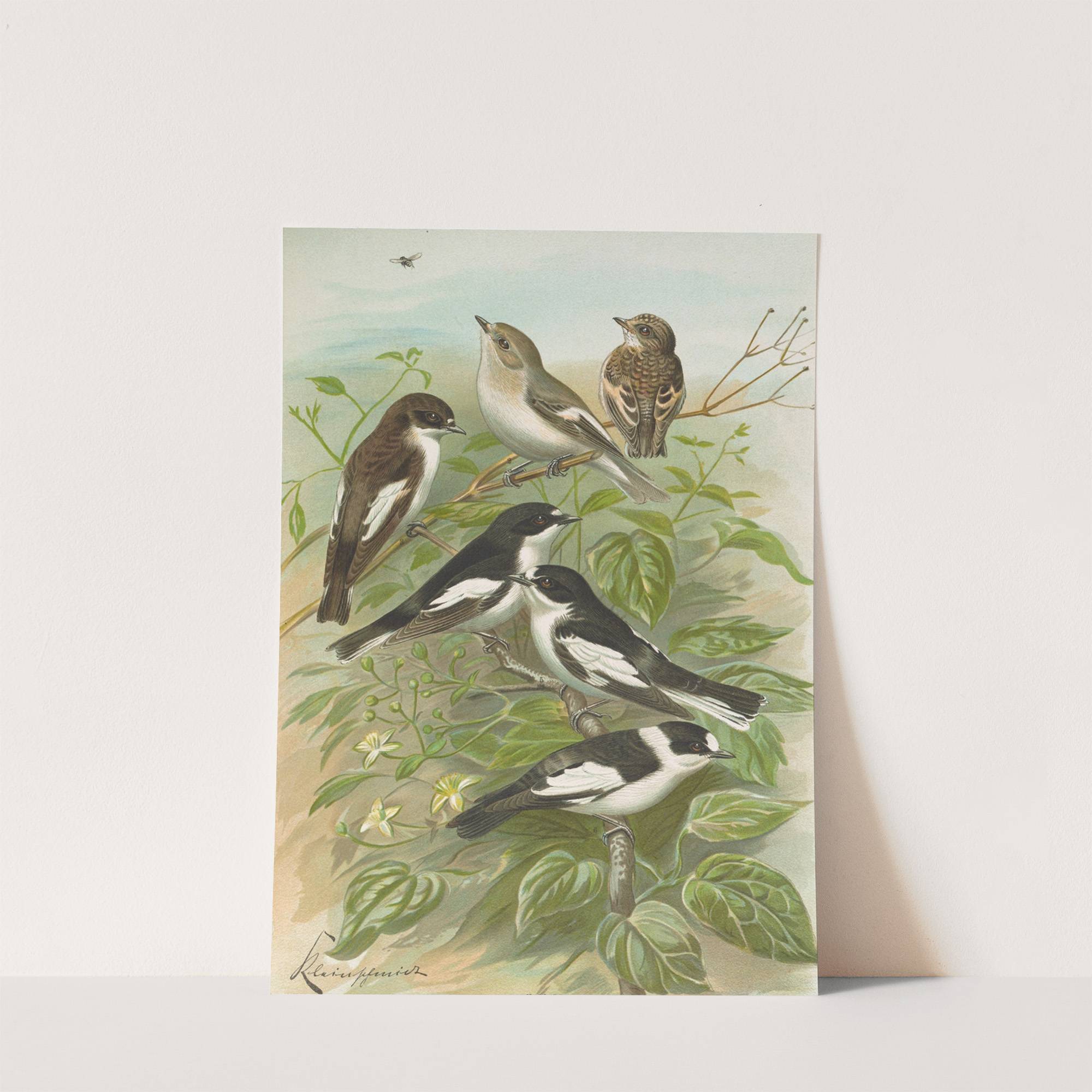 Muscicapa atricapill, Muscicapa collaris semitorquata, Muscicapa collaris Bechst by Johann Friedrich Naumann - Wall Art Print