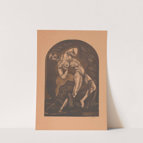 Naakte vrouw staand op liggende man by Henk Schilling - Wall Art Print