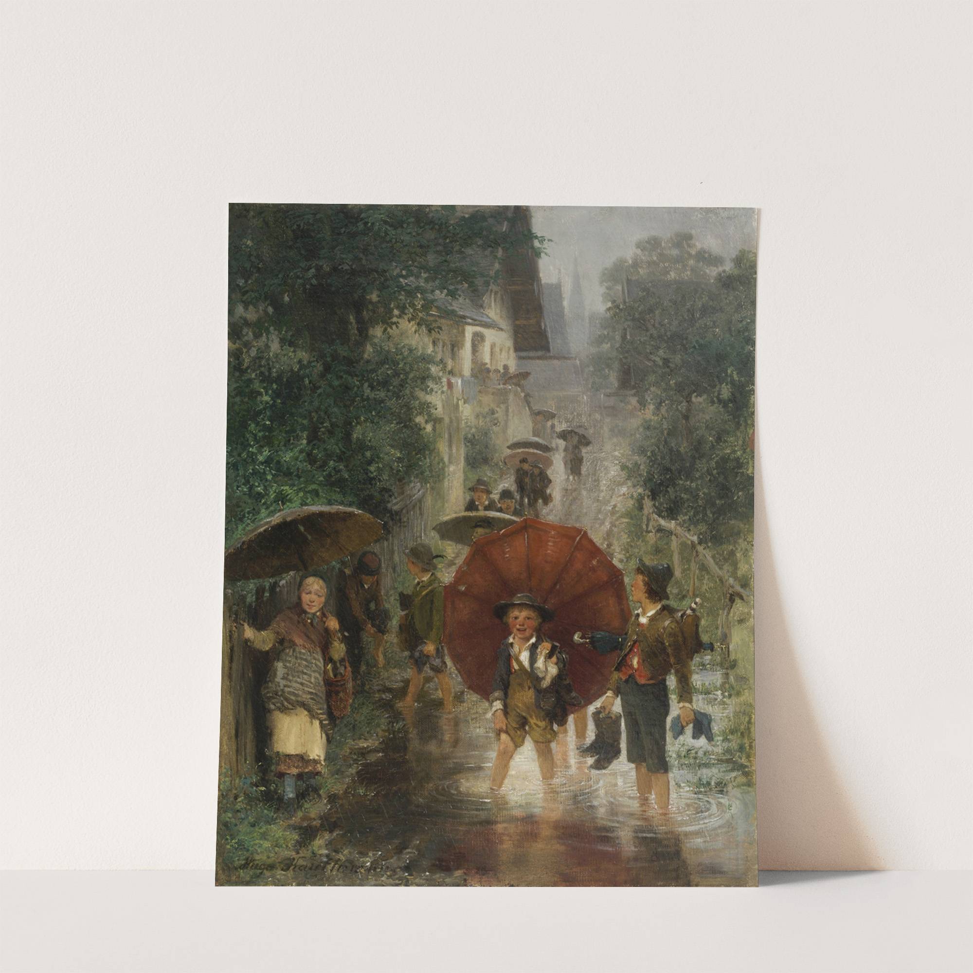 Nach der Schule (Kinder im Regen) by Hugo Kauffmann - Wall Art Print