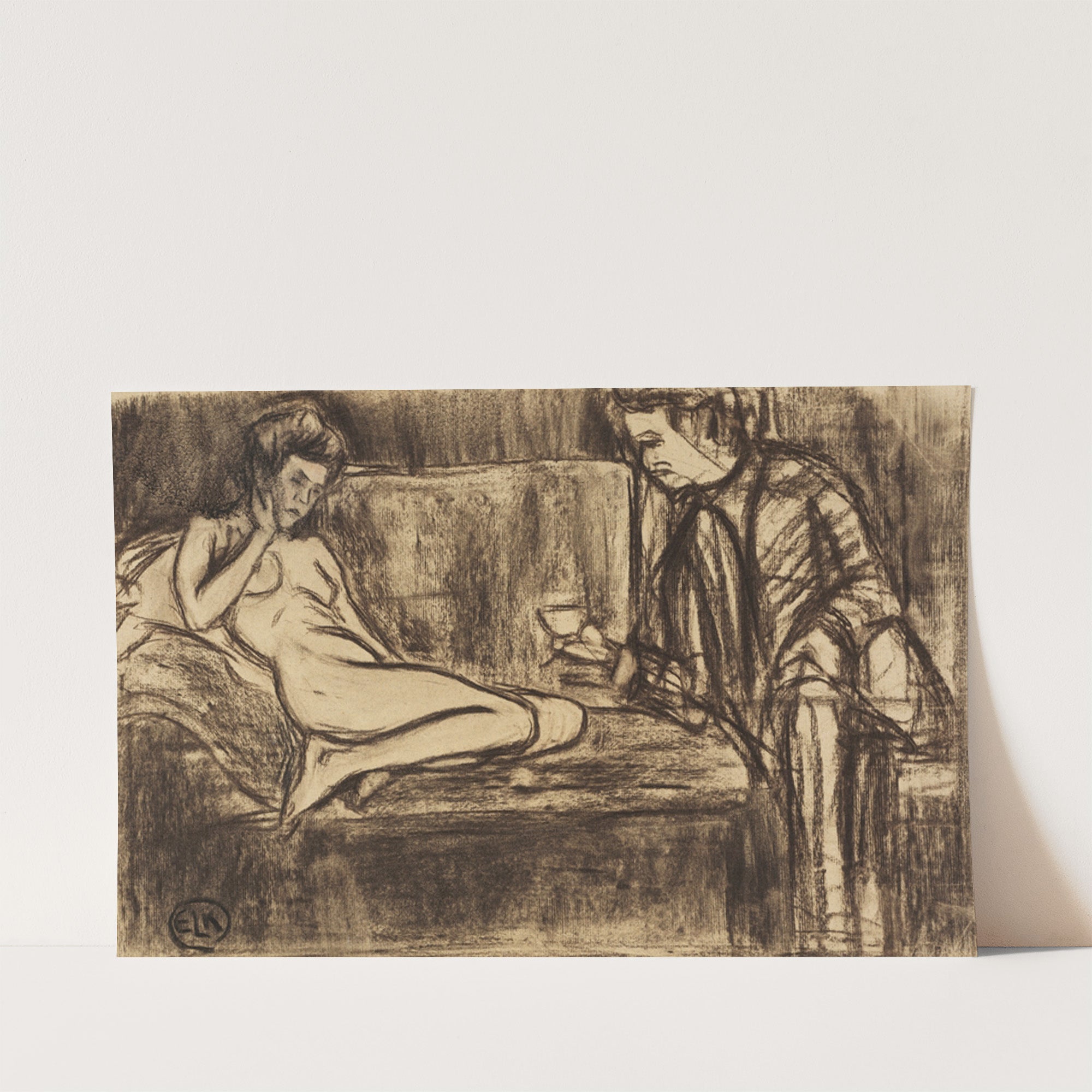Nacktes Modell auf dem Sofa (1905) by Ernst Ludwig Kirchner - Wall Art Print