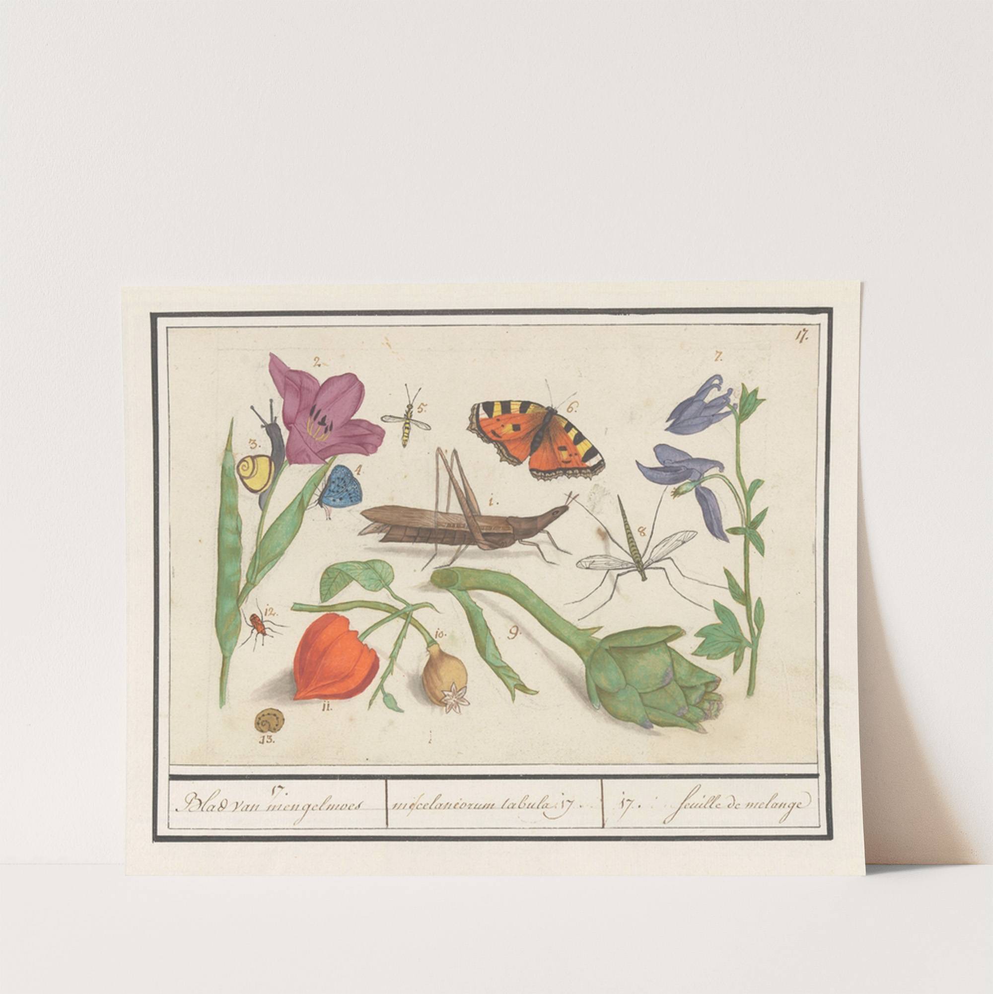 Natuurhistorische ensemble (nr. 17) 17. Blad van mengelmoes miscelaniorum tabula 17. 17. feuille de melange (1596-1610) by Anselmus Boëtius de Boodt - Wall Art Print