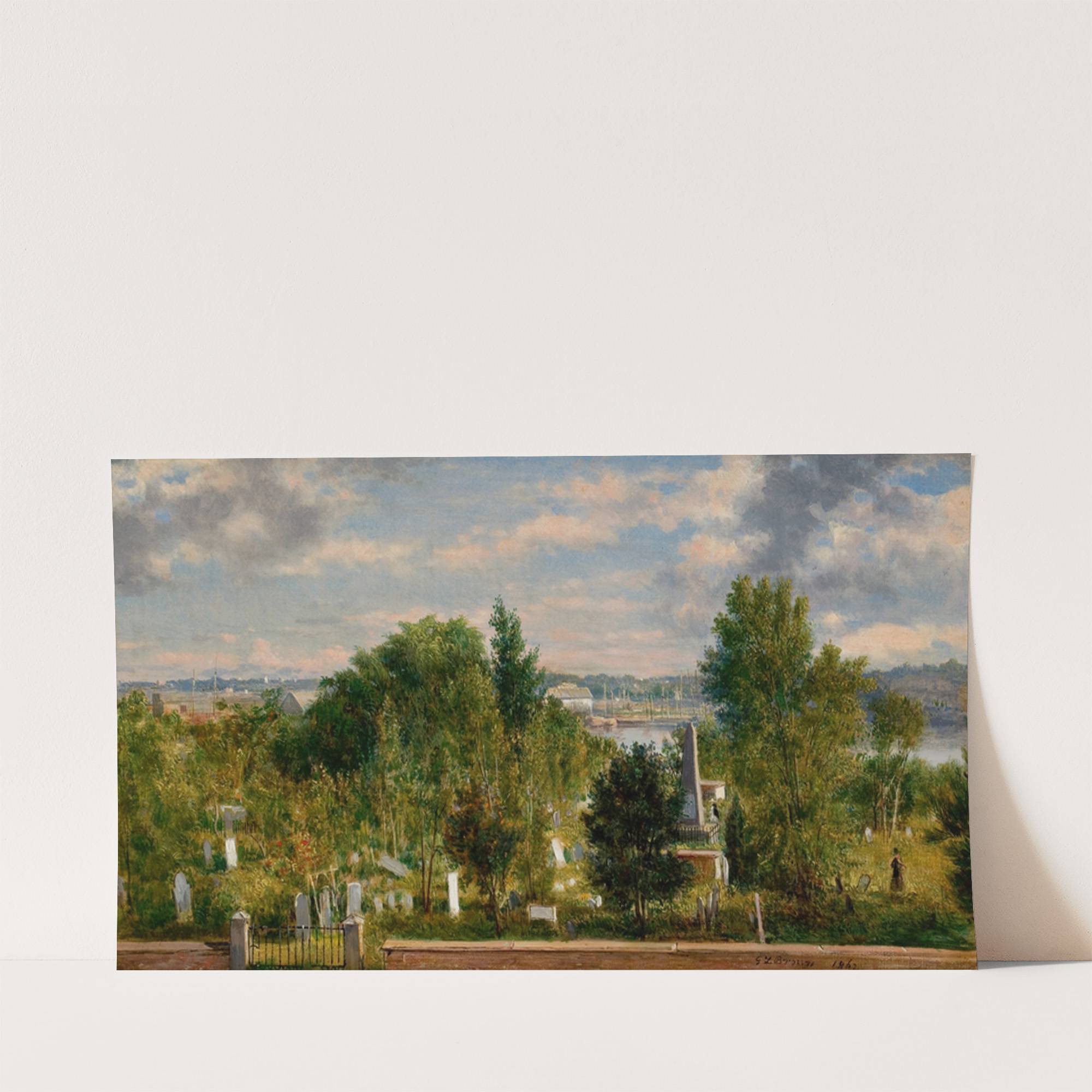 New England Landscape with Cemetery (possibly Medford, MA) by George Loring Brown - Wall Art Print