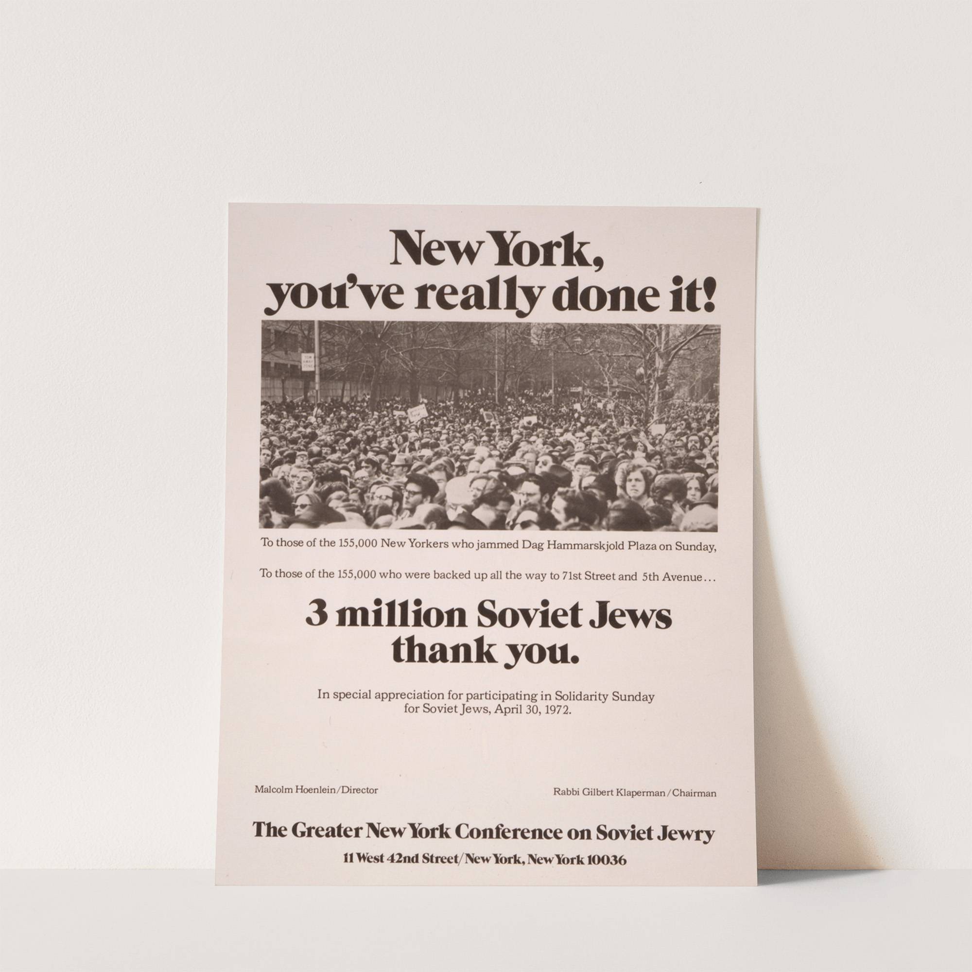 New York, you've really done it! ... 3 million Soviet Jews thank you by Anonymous