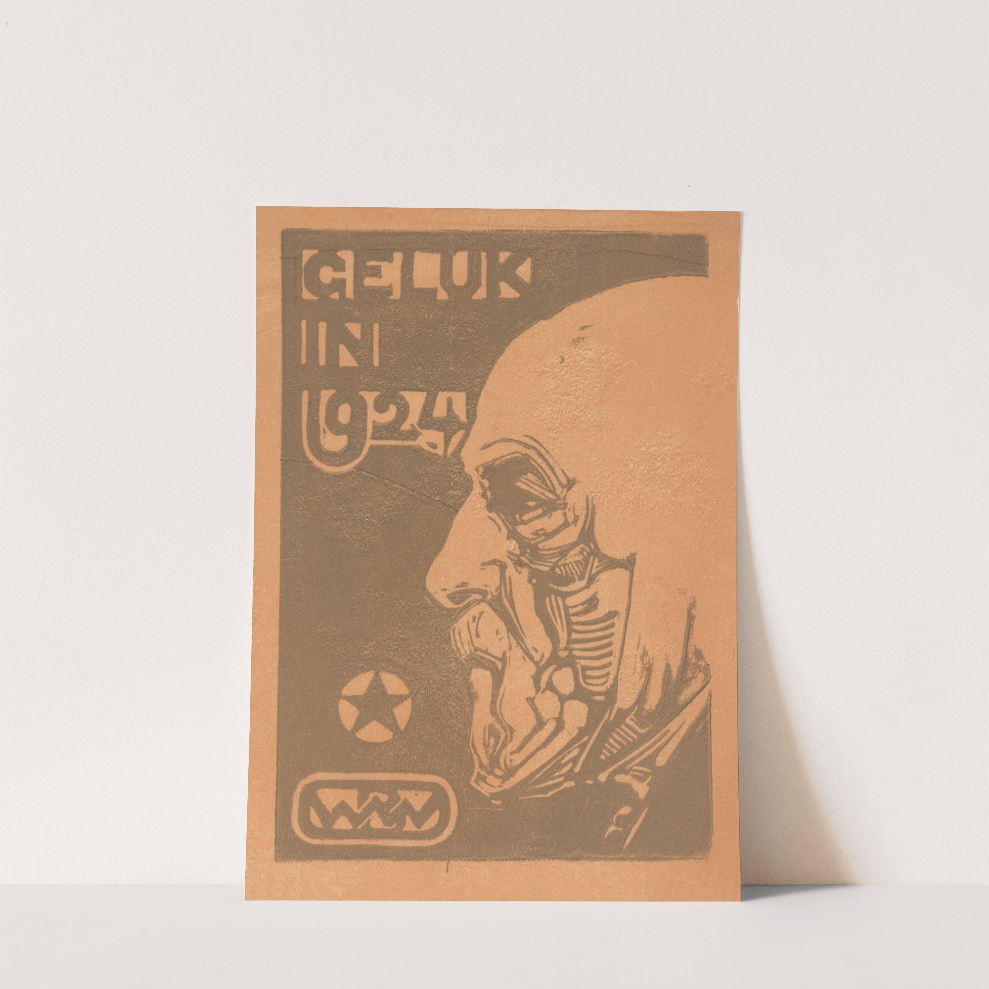 Nieuwjaarswens voor 1924 met zelfportret (1923) by Bernard Willem Wierink - Wall Art Print