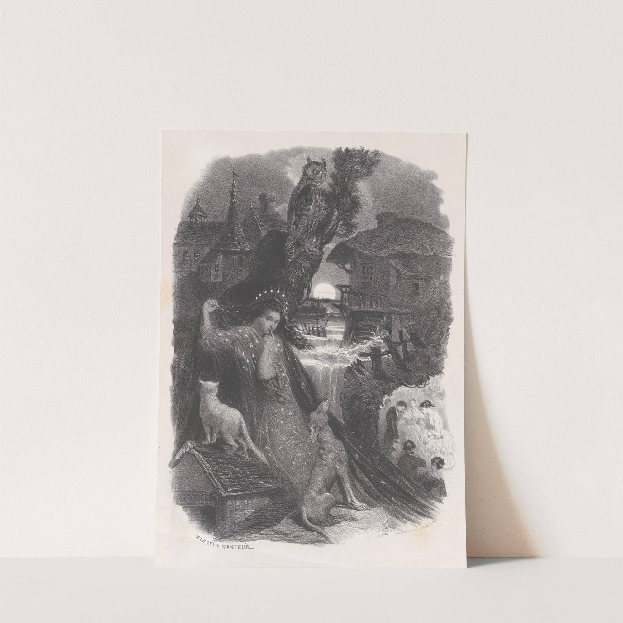 Night; vignette of girl in 18th century costume picking roses on verso (ca. 1830–65) by Celestin Nanteuil - Wall Art Print