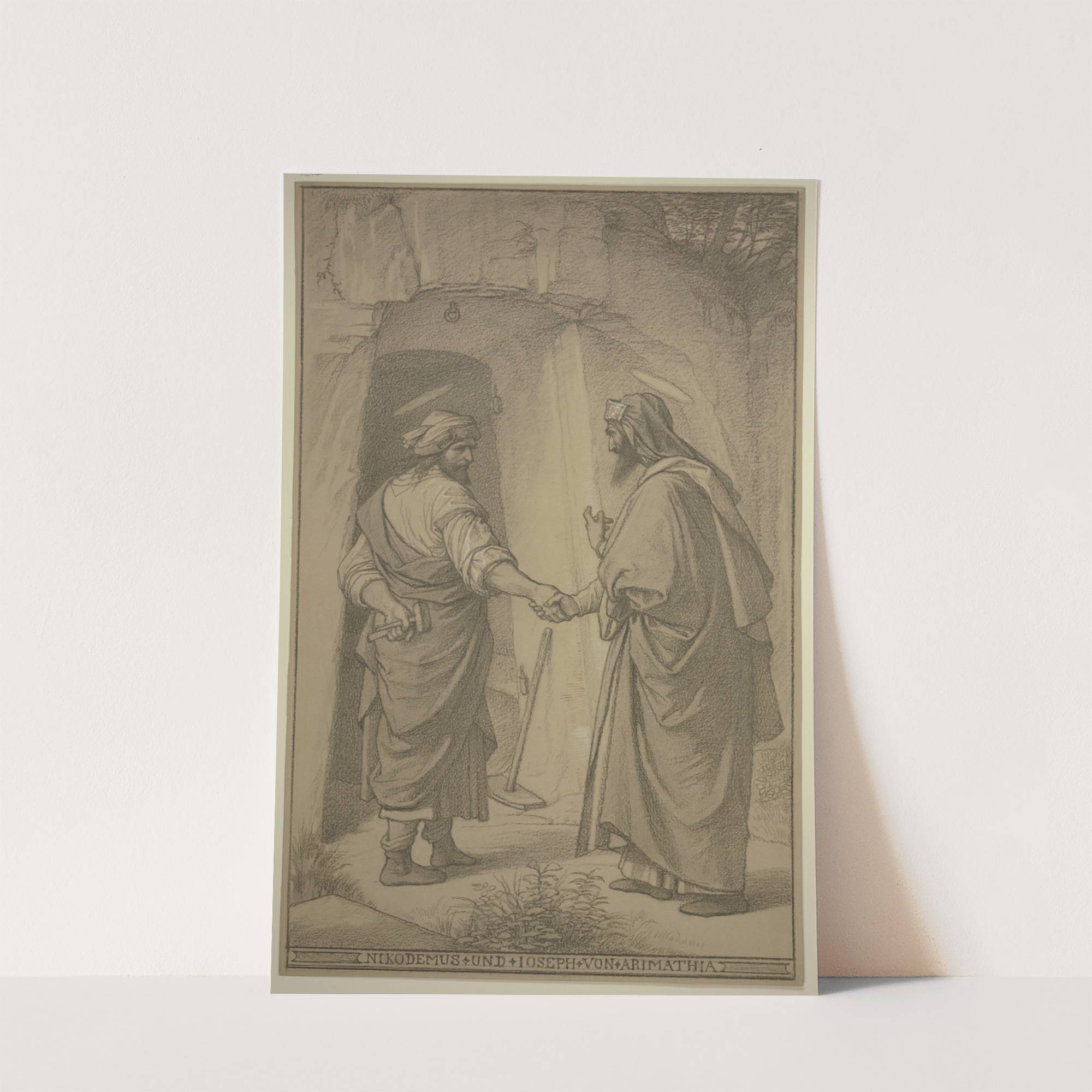 Nikodemus und Joseph von Arimathia vor dem Grab des Herrn, sich die Hand reichend by Eduard von Steinle  - Wall Art Print