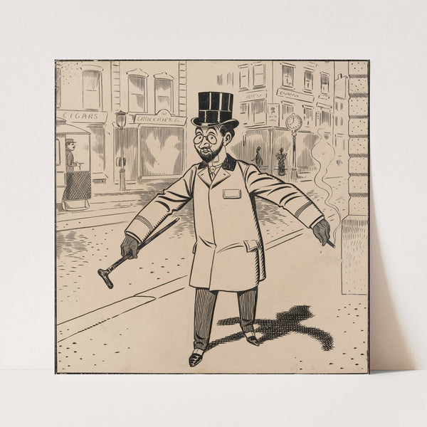Nine comic strip frames of man dropping molasses and feathers on lions beneath his hammock Pl.7 by Franklin Morris Howarth - Wall Art Print