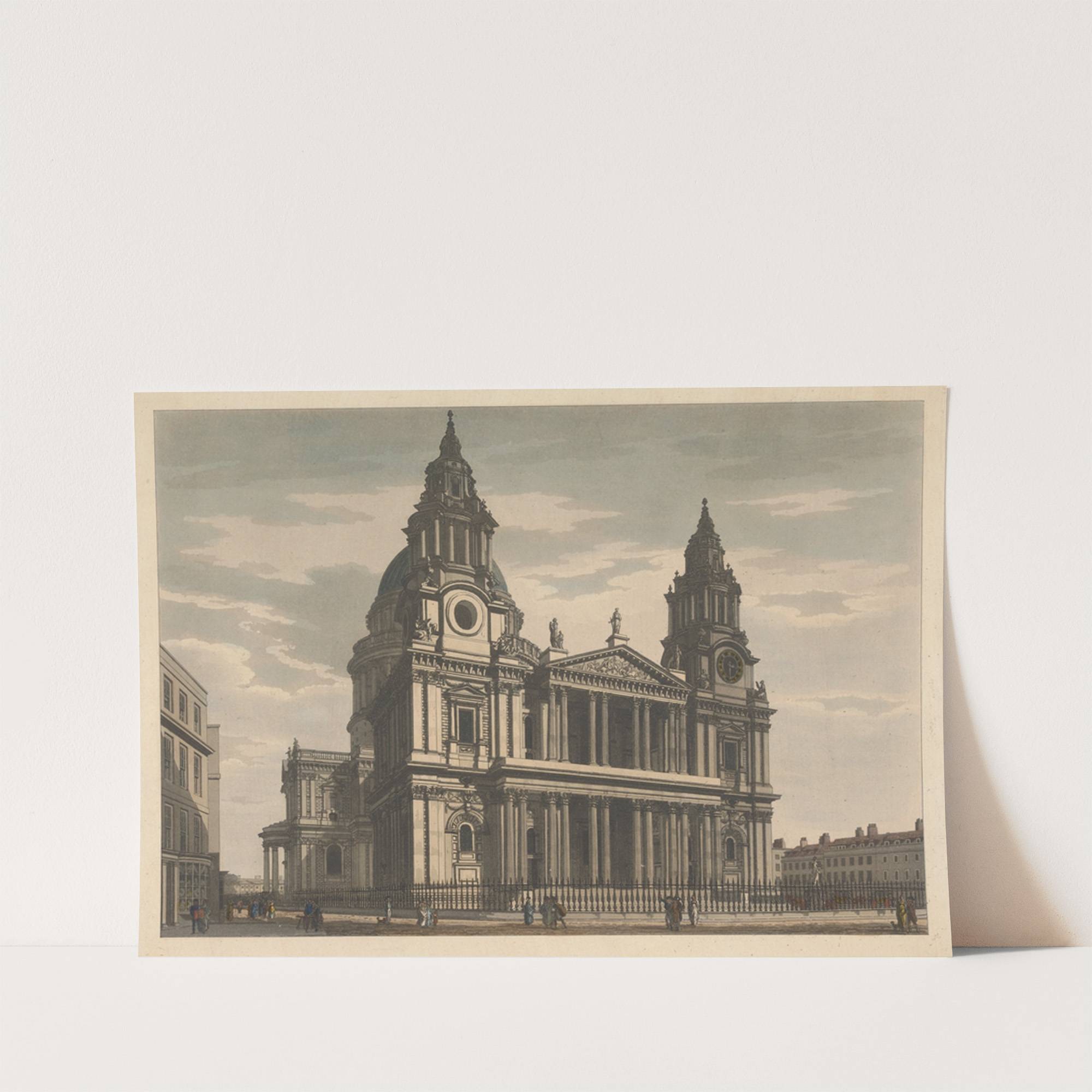 Discover the timeless elegance of "North West View of St. Paul's" by Thomas Malton, a meticulous drawing that captures the grandeur of this historic London landmark. This black-and-white illustration showcases the intricate architecture of St. Paul's Cathedral with stunning precision,...