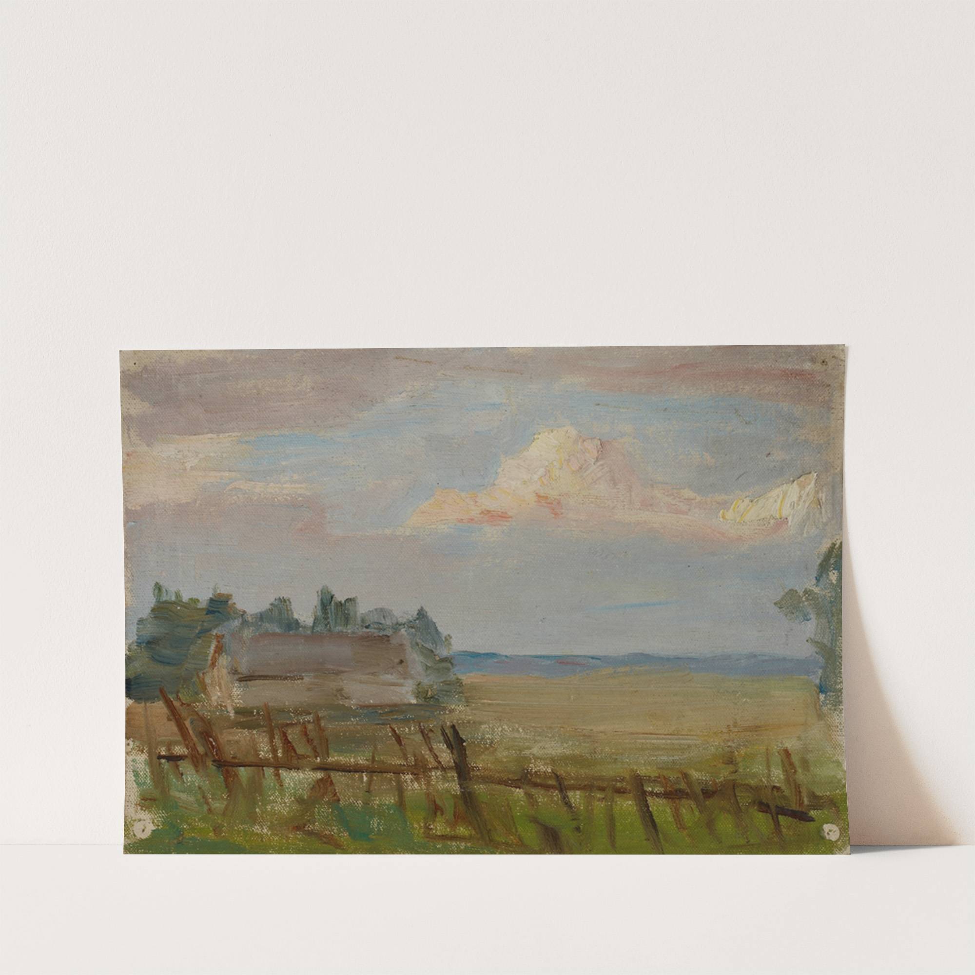 This vibrant oil painting titled "The White Night – Clouds" by artist Jan Ciągliński captures the serene beauty of a rural landscape at dawn or dusk. The sky is painted in soft hues of pink, blue, and white, with a...