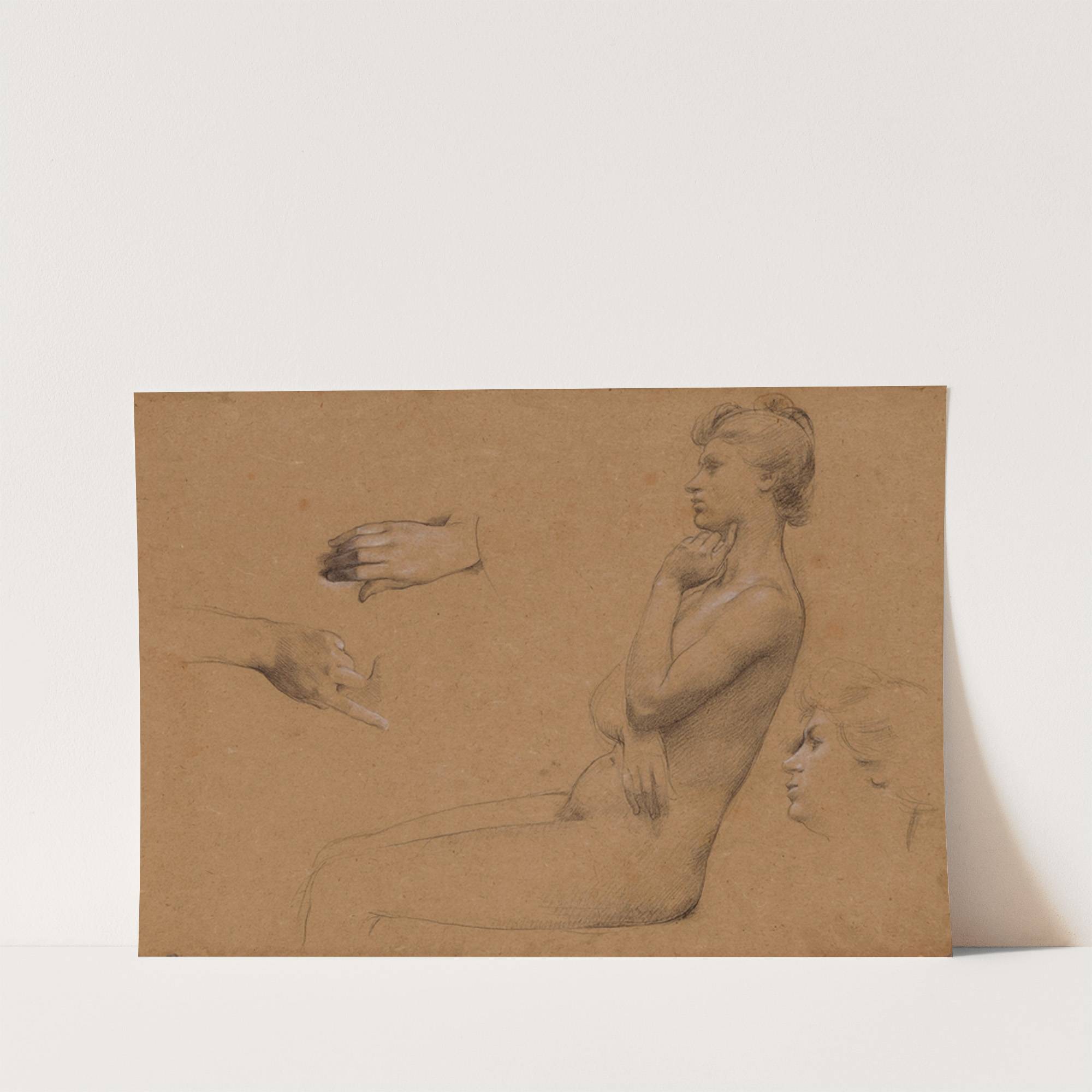 Nu de femme assise, et étude de mains et de visage by Luc-Olivier Merson - Wall Art Print