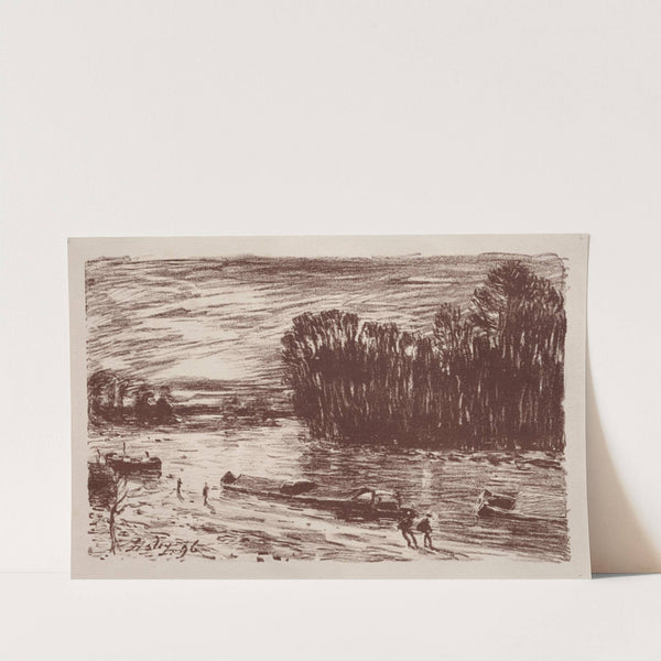Experience the serene beauty of nature with "On the Banks of the Loing" by Alfred Sisley, a stunning monochromatic ink drawing that captures the tranquility of a riverside landscape. This piece, created in 1896, features intricate and expressive brushwork that...