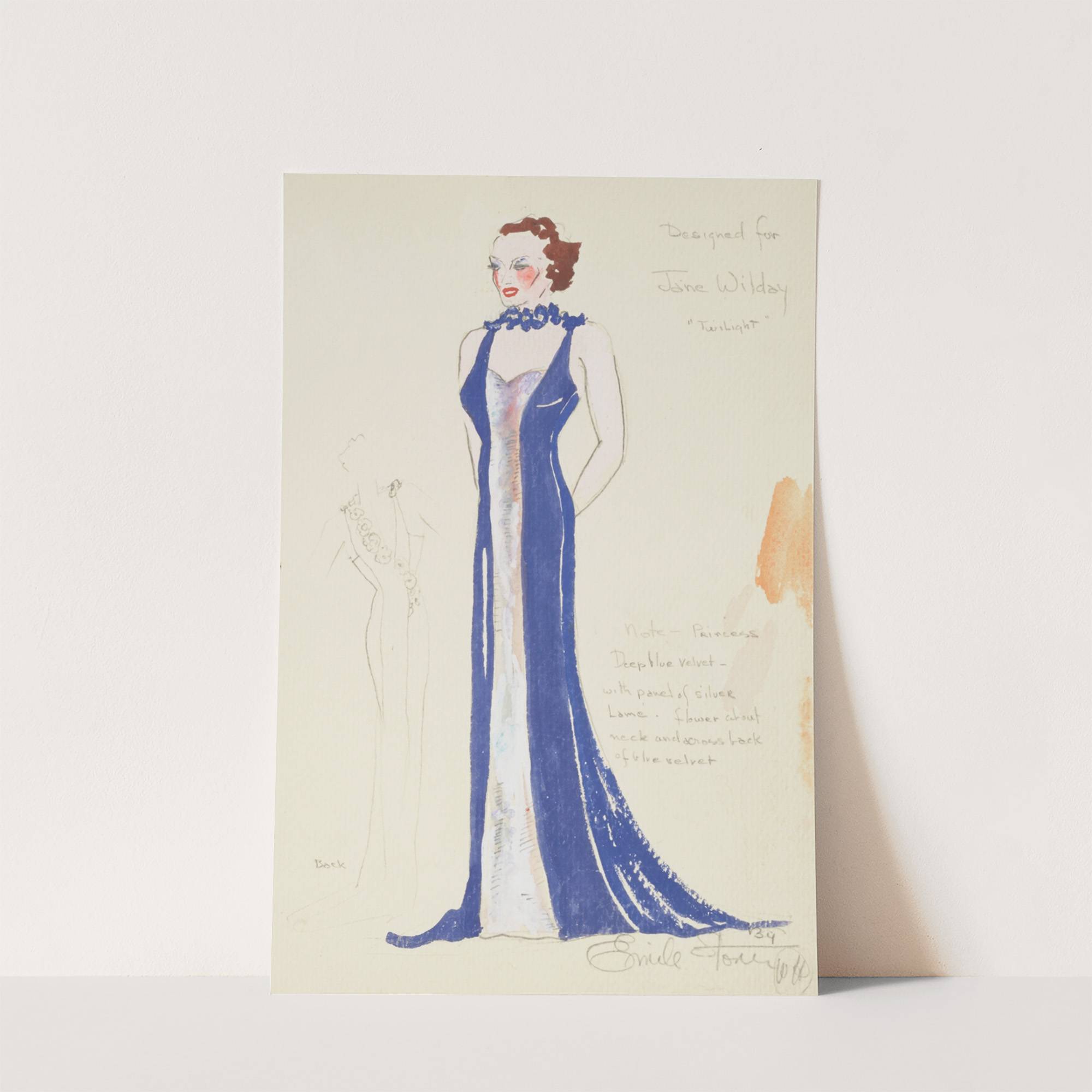 On Top: Designed for Jane Wilday ‘Twilight’, Blue evening gown with silver panel and flowered neck (1934-1943) by Emile Stoner - Wall Art Print